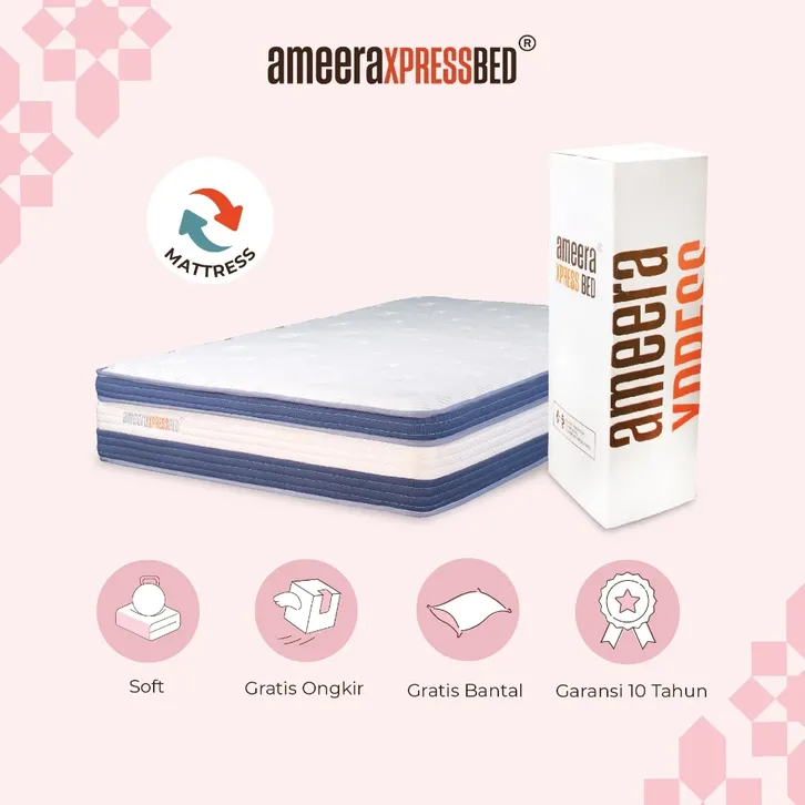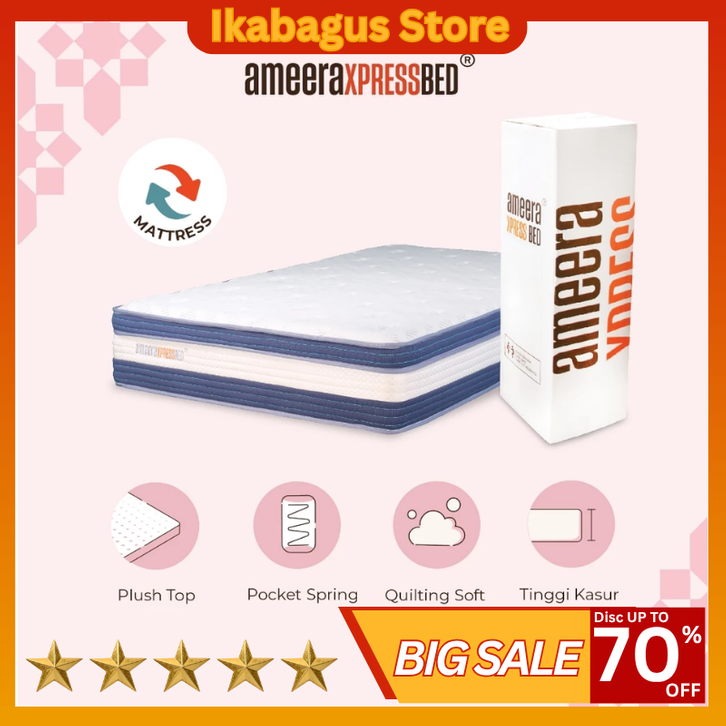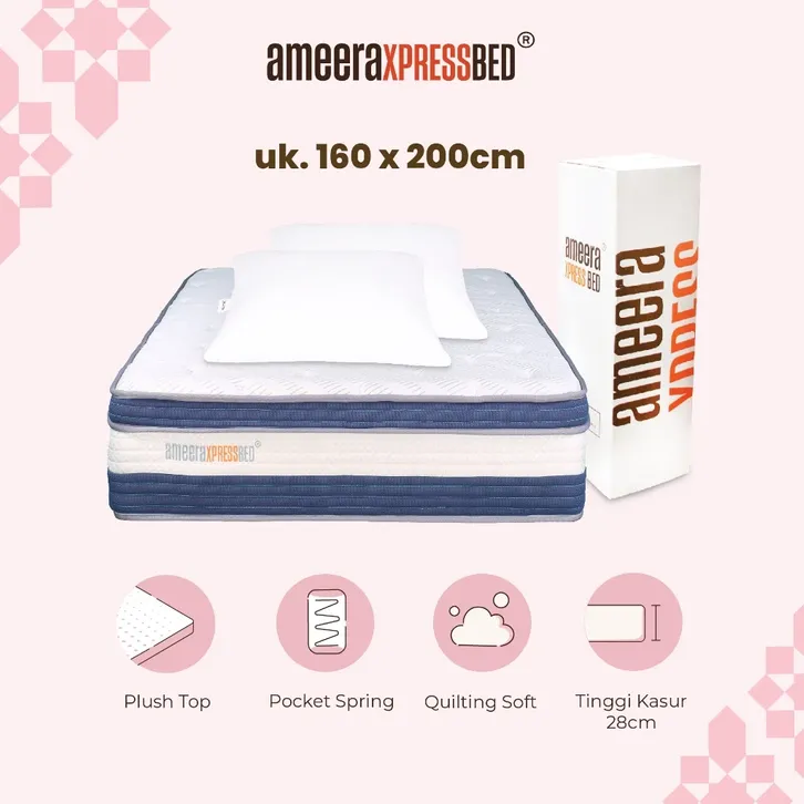 KASUR BUSA AMEERA XPRESS Plush 160x200 + 2 Pillow FREE SPRINGBED AMEERA XPRESS ANTI BAKTERI AMEERA