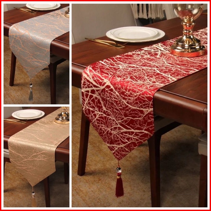 Table Runner Panjang Meja Makan Taplak Meja Tamu Motif Grass Root