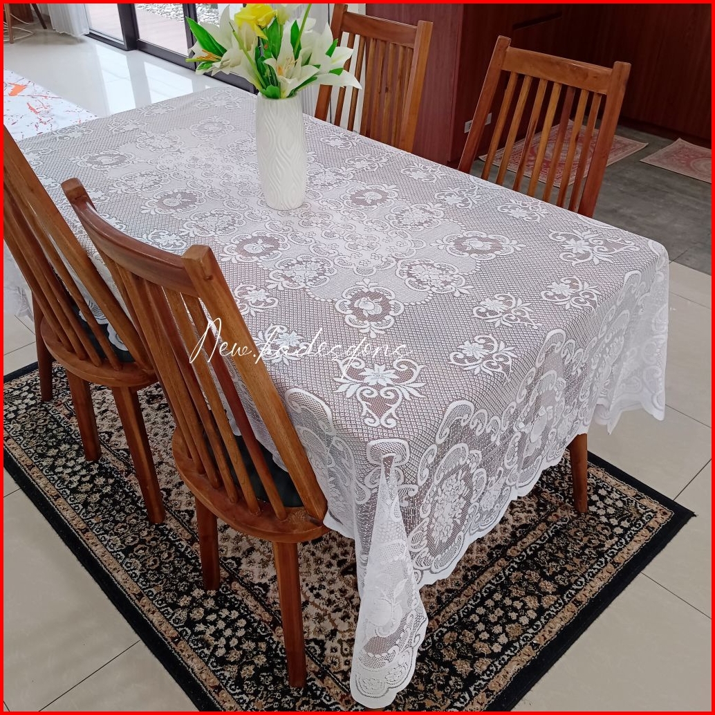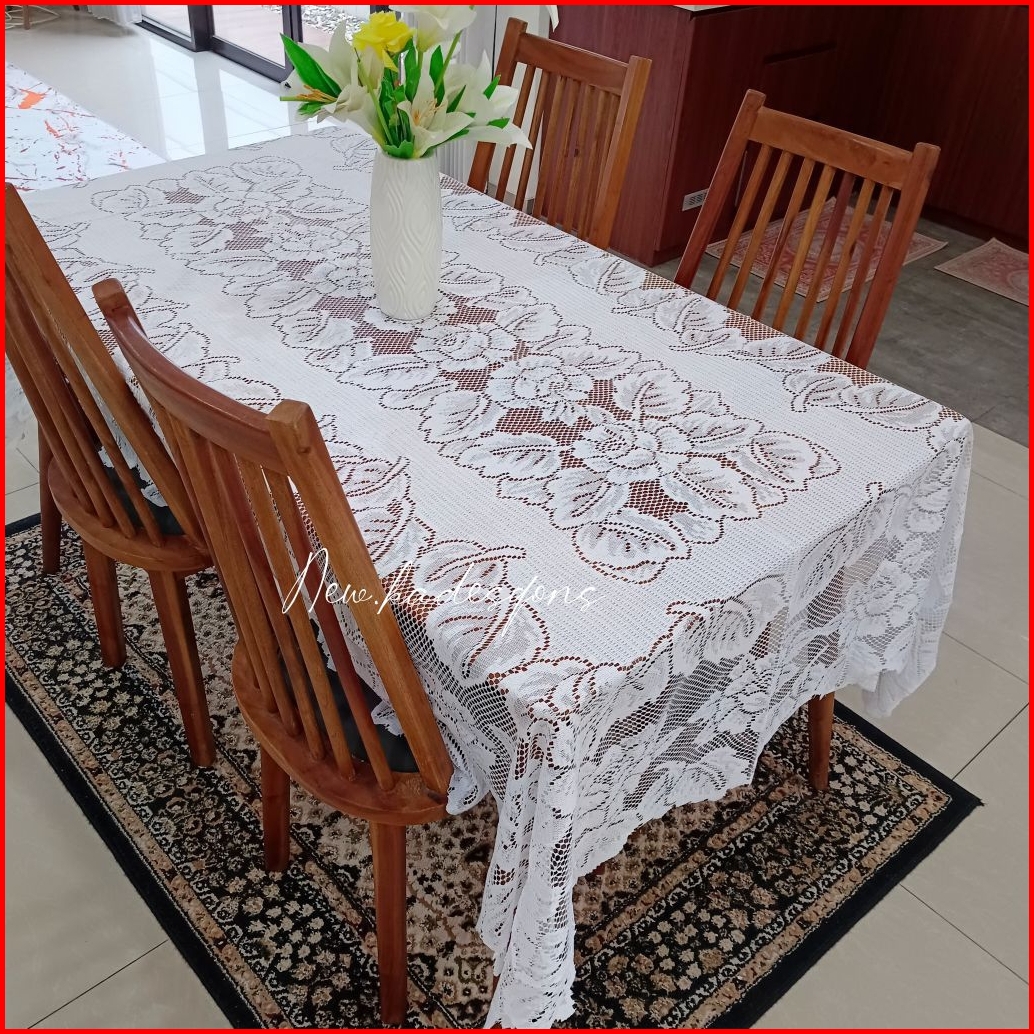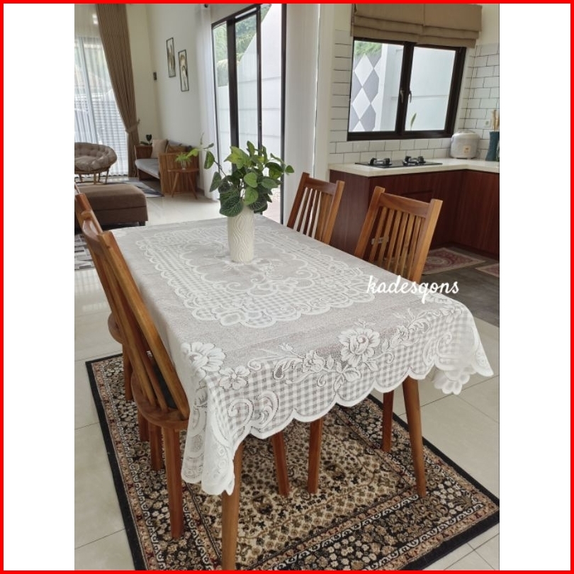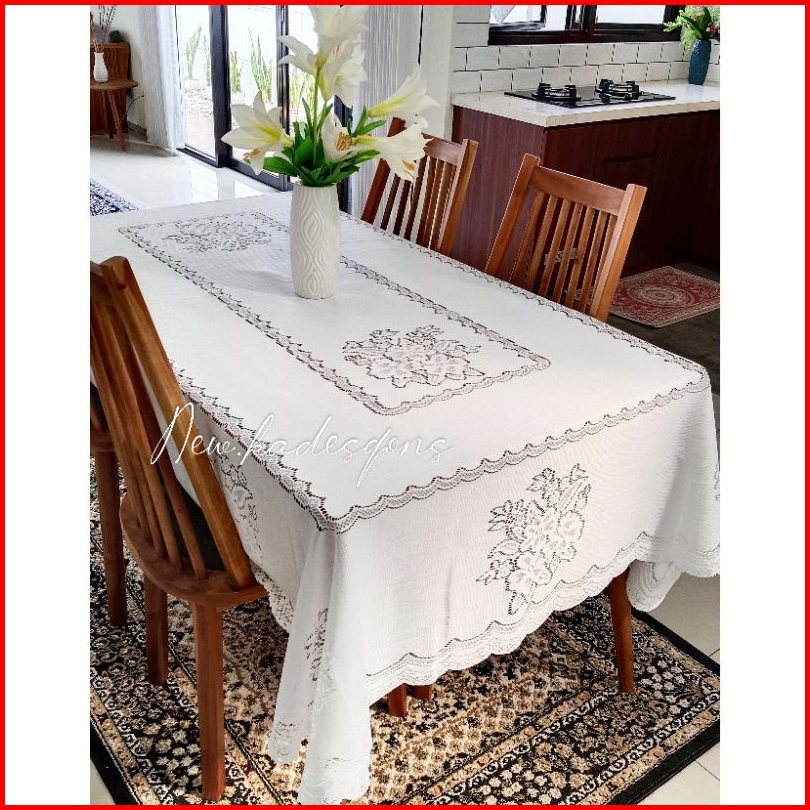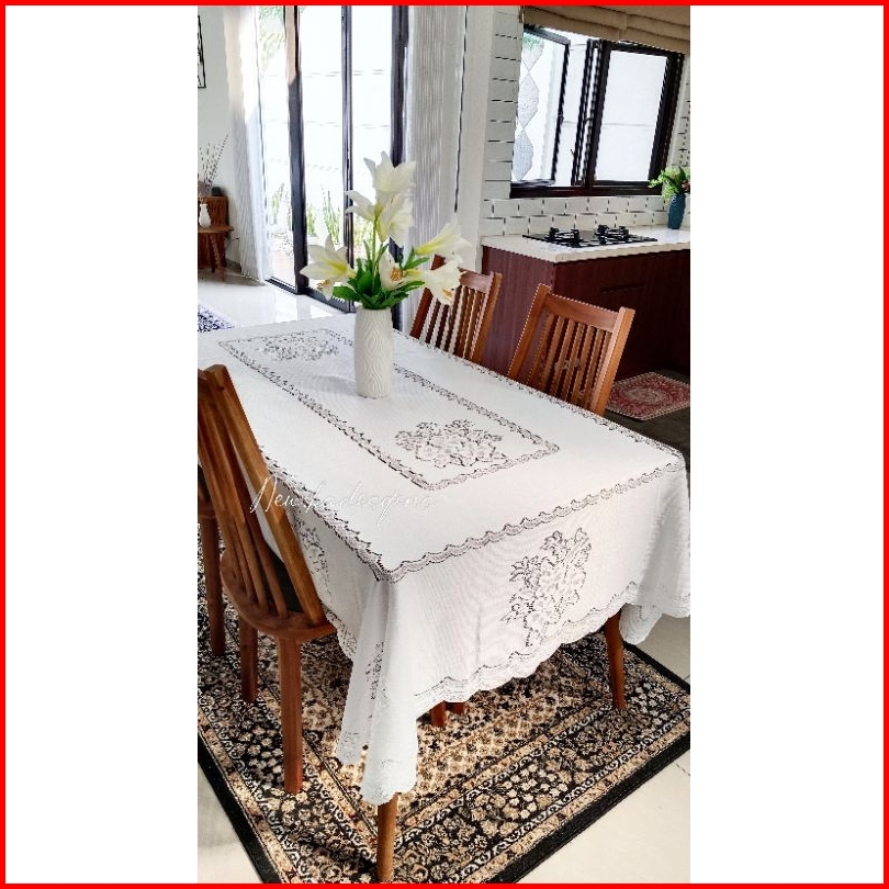 Taplak Meja Makan Putih 150x230cm . Perabot Rumah Aestetik Mewah Minimalis . Taplak Tamu Panjang Tablecloth Tablerunner