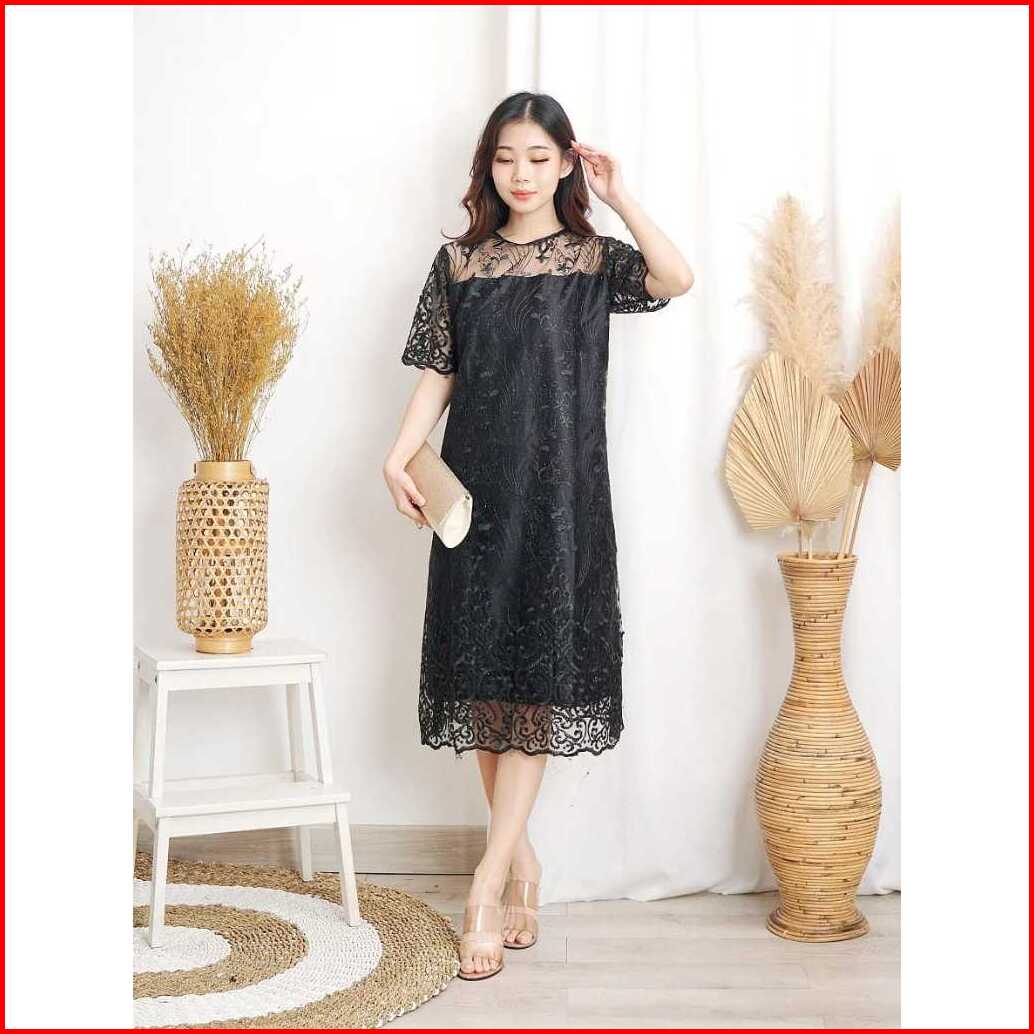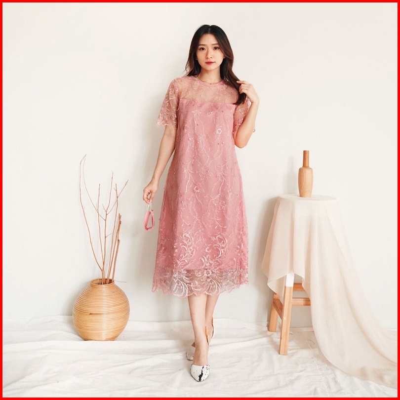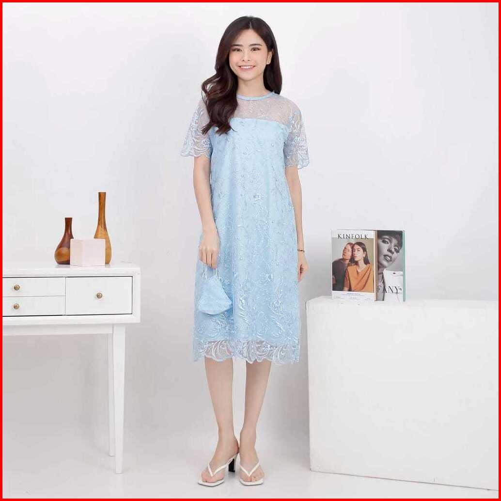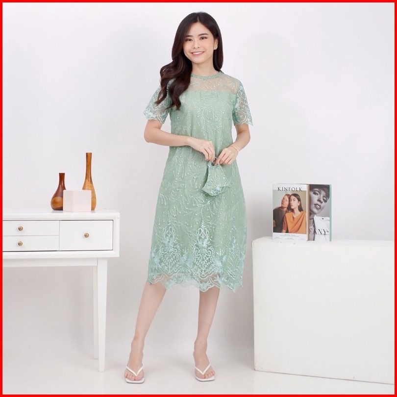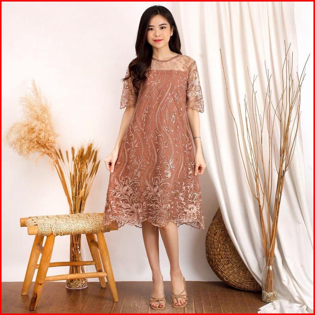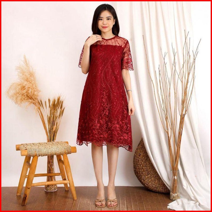 Zona - Dress Natal Brokat Alea Dress Brokat Wanita Kristen Dress Imlek Murah Dress Pesta Wanita Dress Brokat Pendek Baju