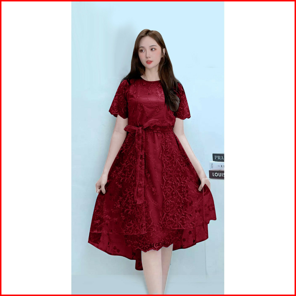 Dress Natal Wanita Terbaru Korean 2023 Bahan Premium-shina