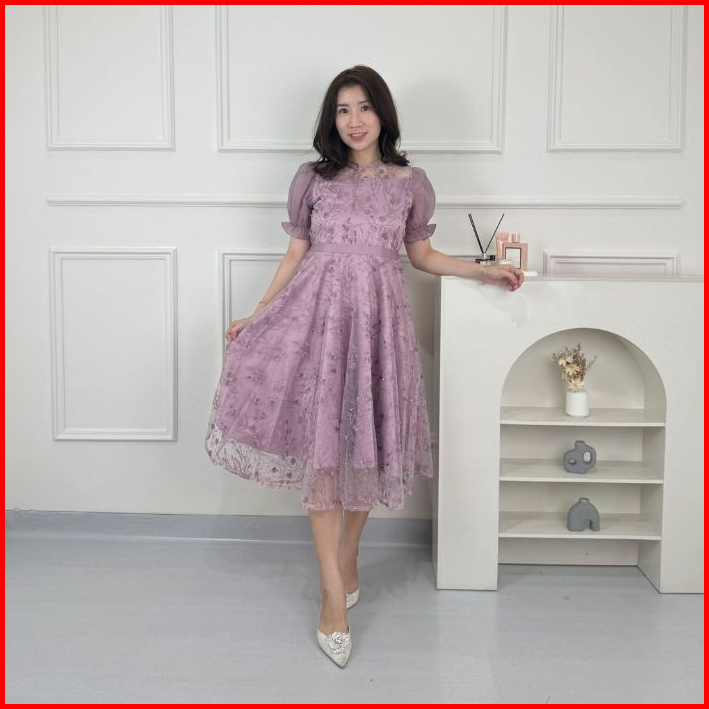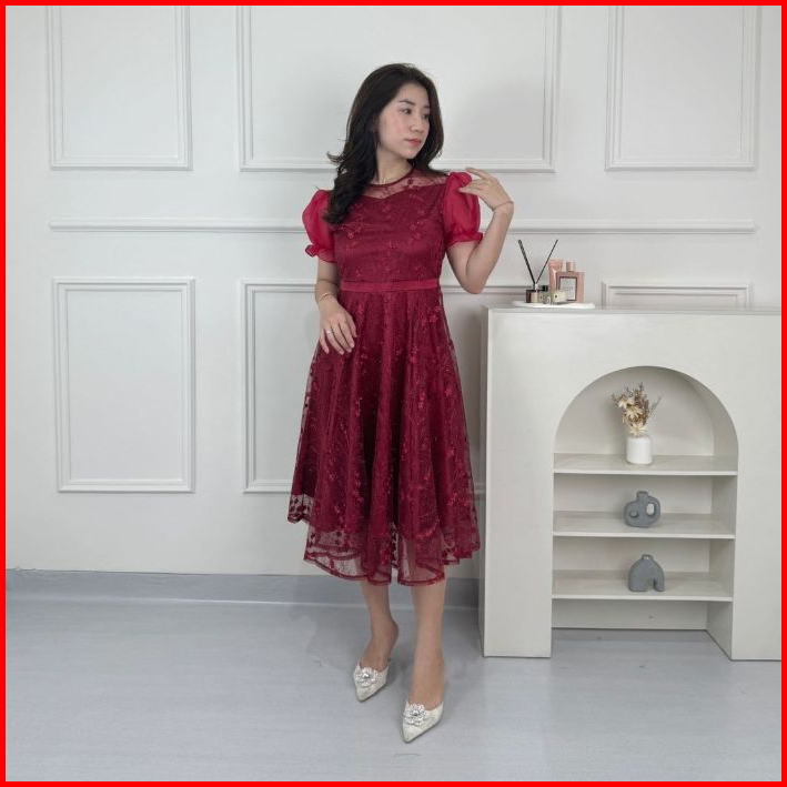 Navira - Cheryl Dress - Dress Pesta Wanita - Dress Kondangan - Dress Natal - Dress Tile Mutiara