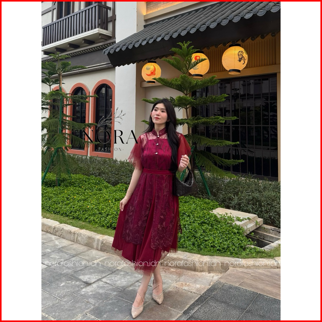 Hyuna Dress - Nora Fashion - Dress Pesta - Dress Natal - Dress Kondangan - Dress Jumbo - Dress Tile Wanita