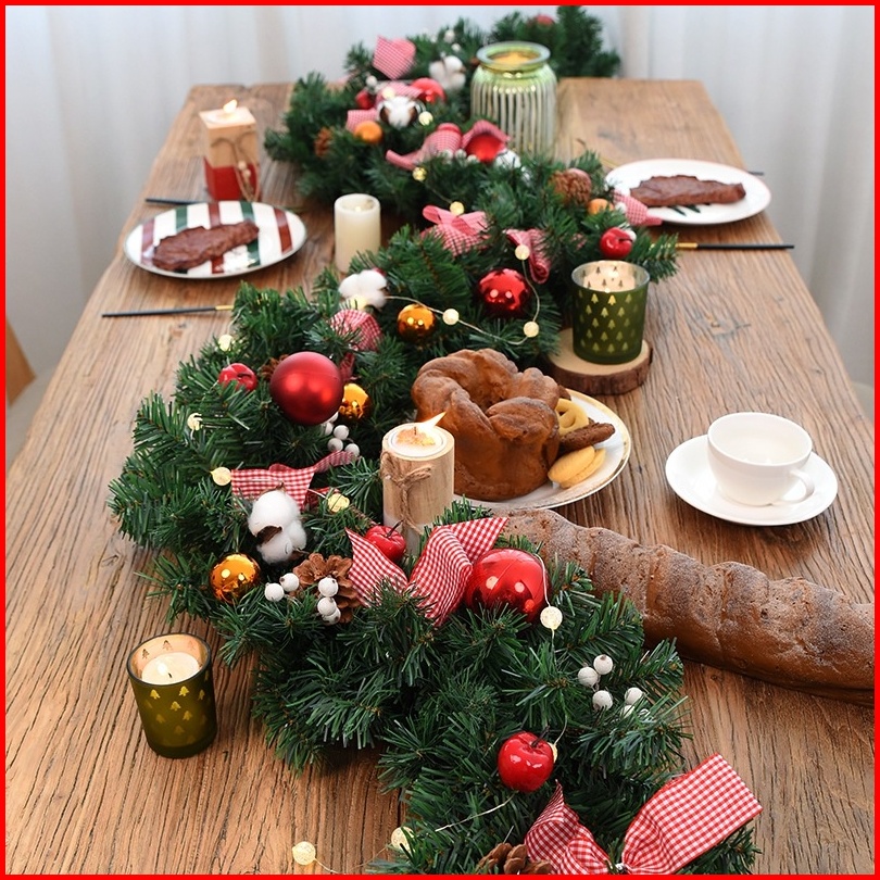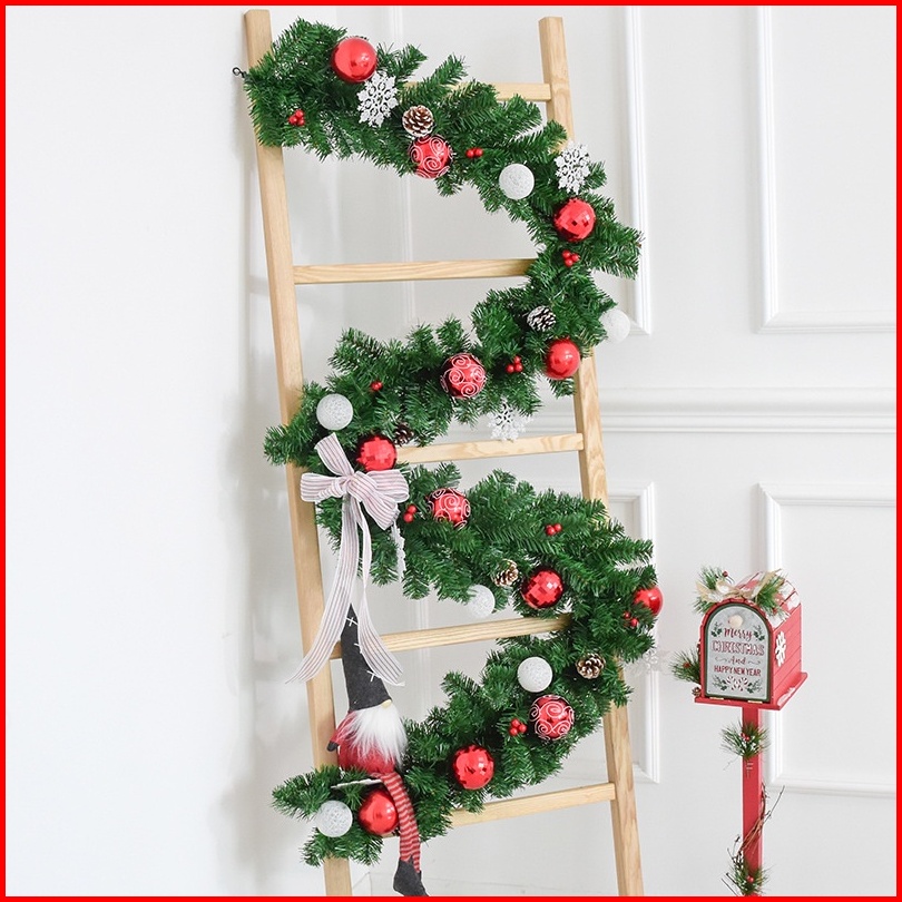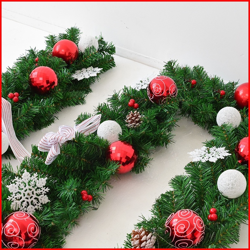 Garland Natal 2.7 Meter Hijau Daun Bunga Natal Lingkar Garlan Aksesoris Dekorasi Christmas Natal Hiasan Daun Natal Grosi