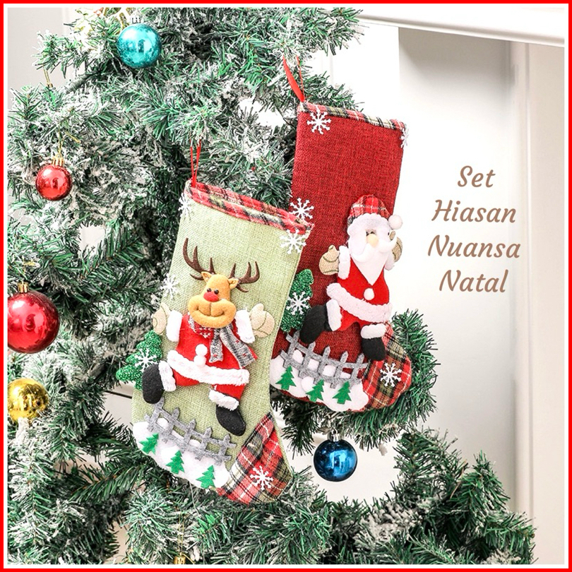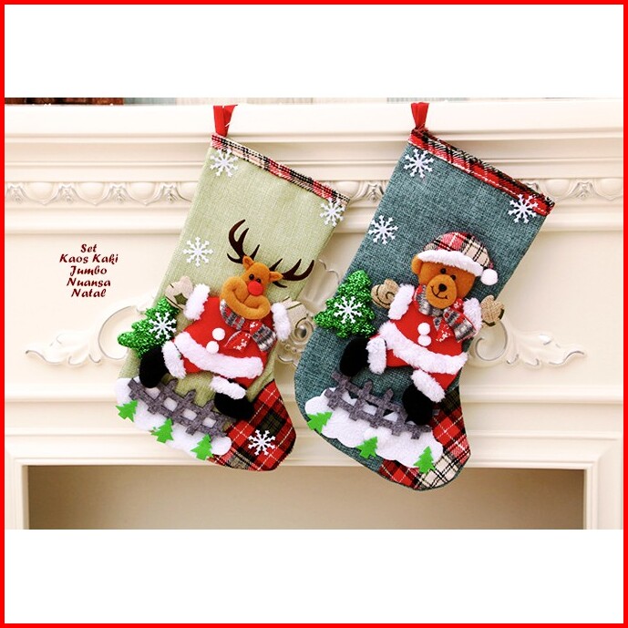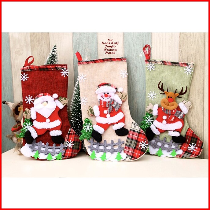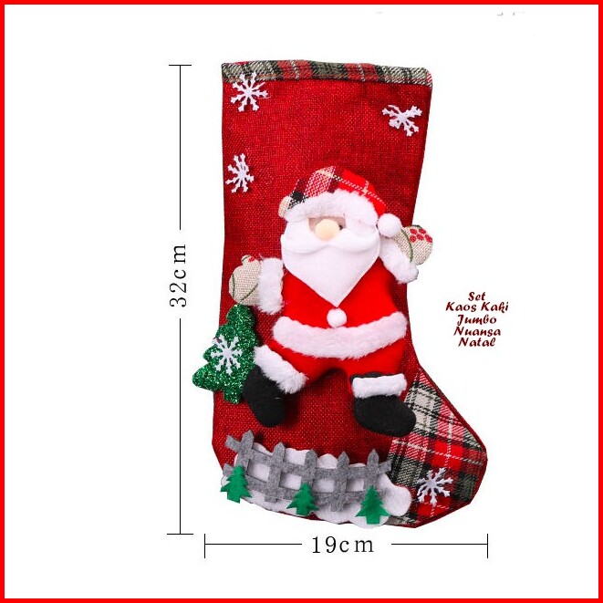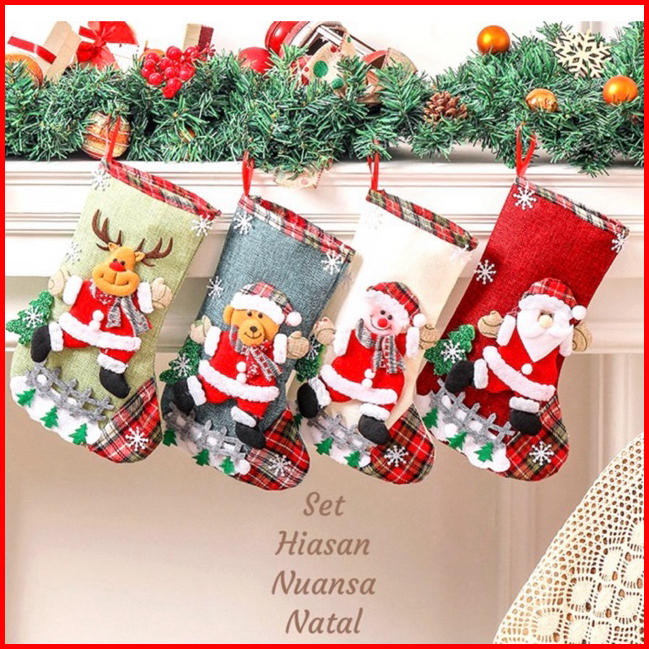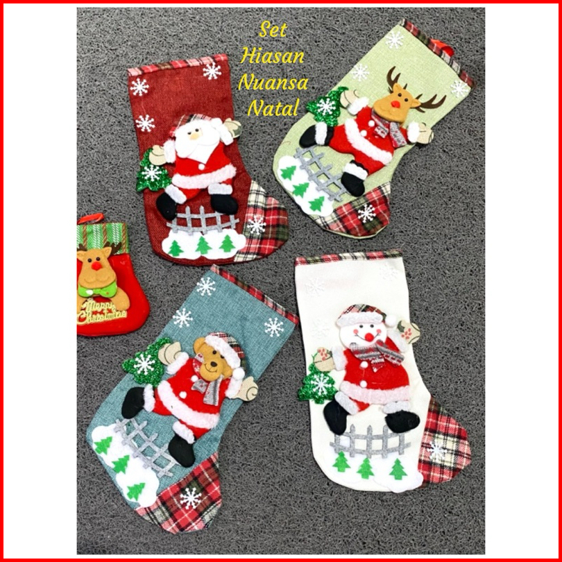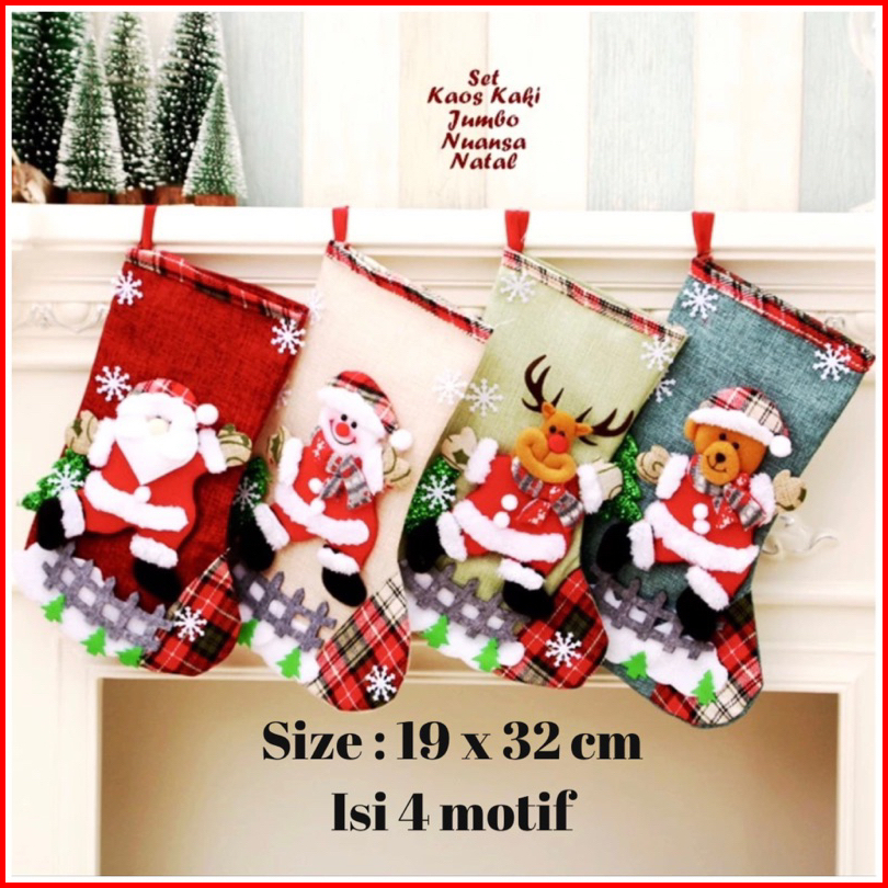 Isi 4 Motif 19x32 Cm Hiasan Natal Set Kaos Kaki Jumbo 4 Warna Ukuran Besar Christmas Decoration