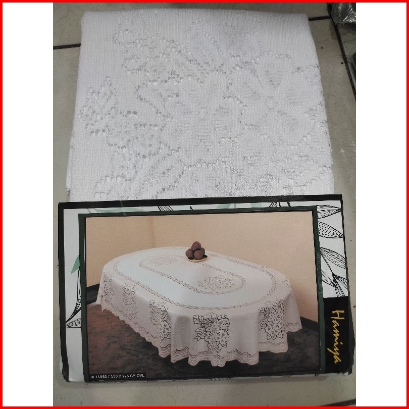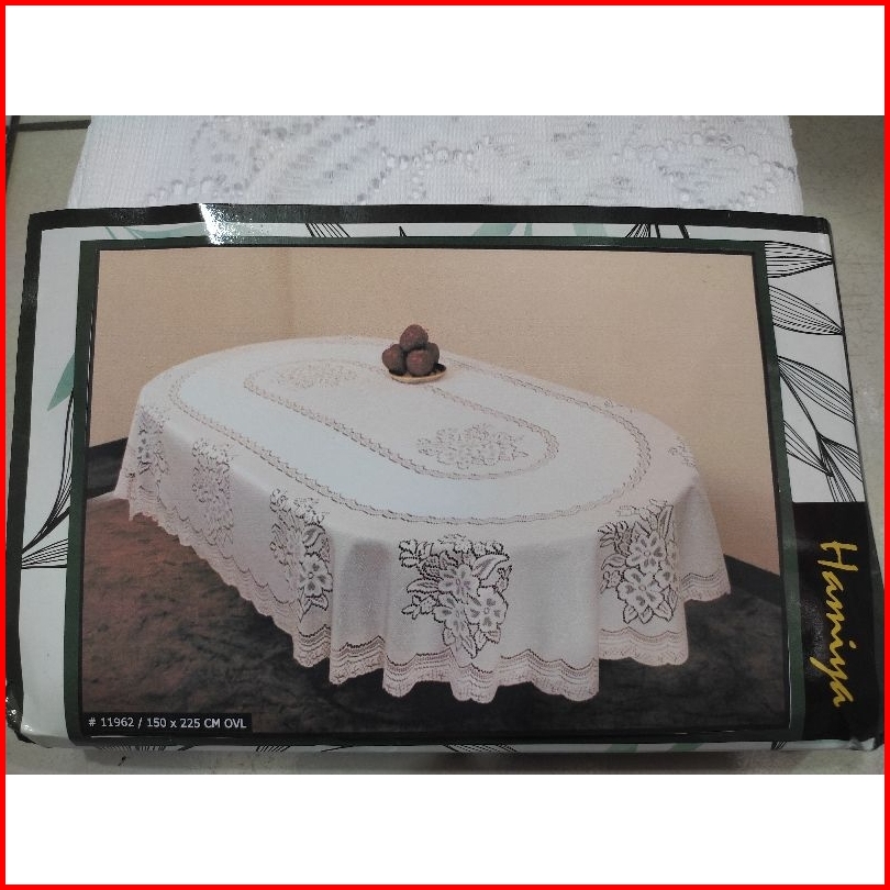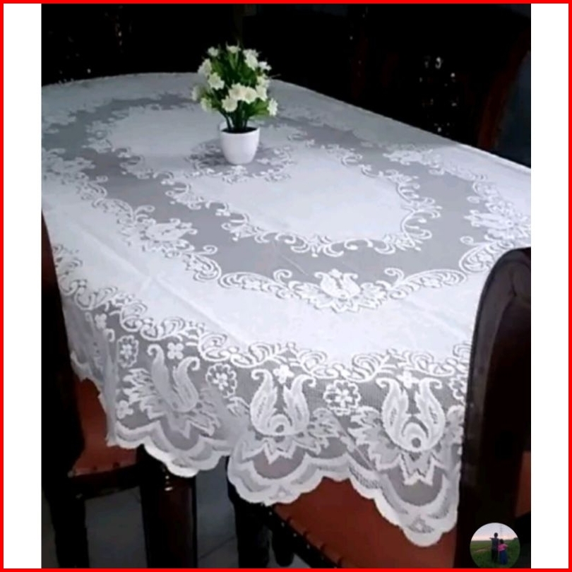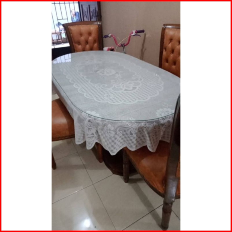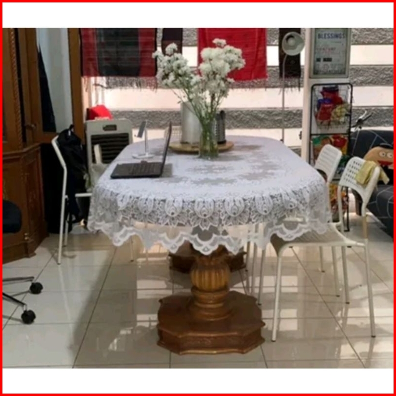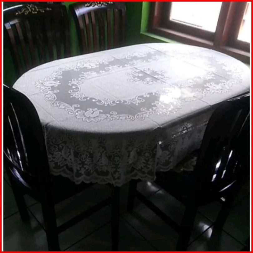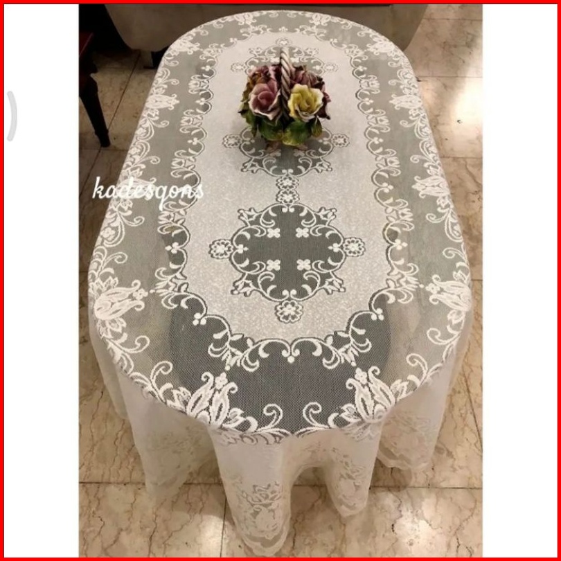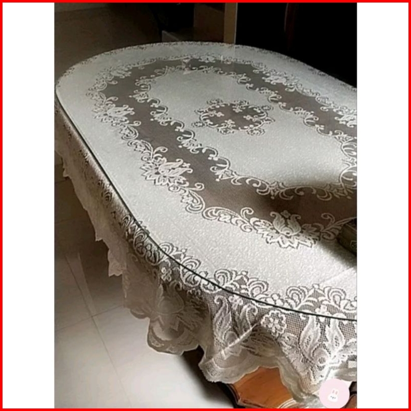 Taplak Meja Makan Oval Lonjong Untuk 6-8-10 Kursi Polyester Renda Classic