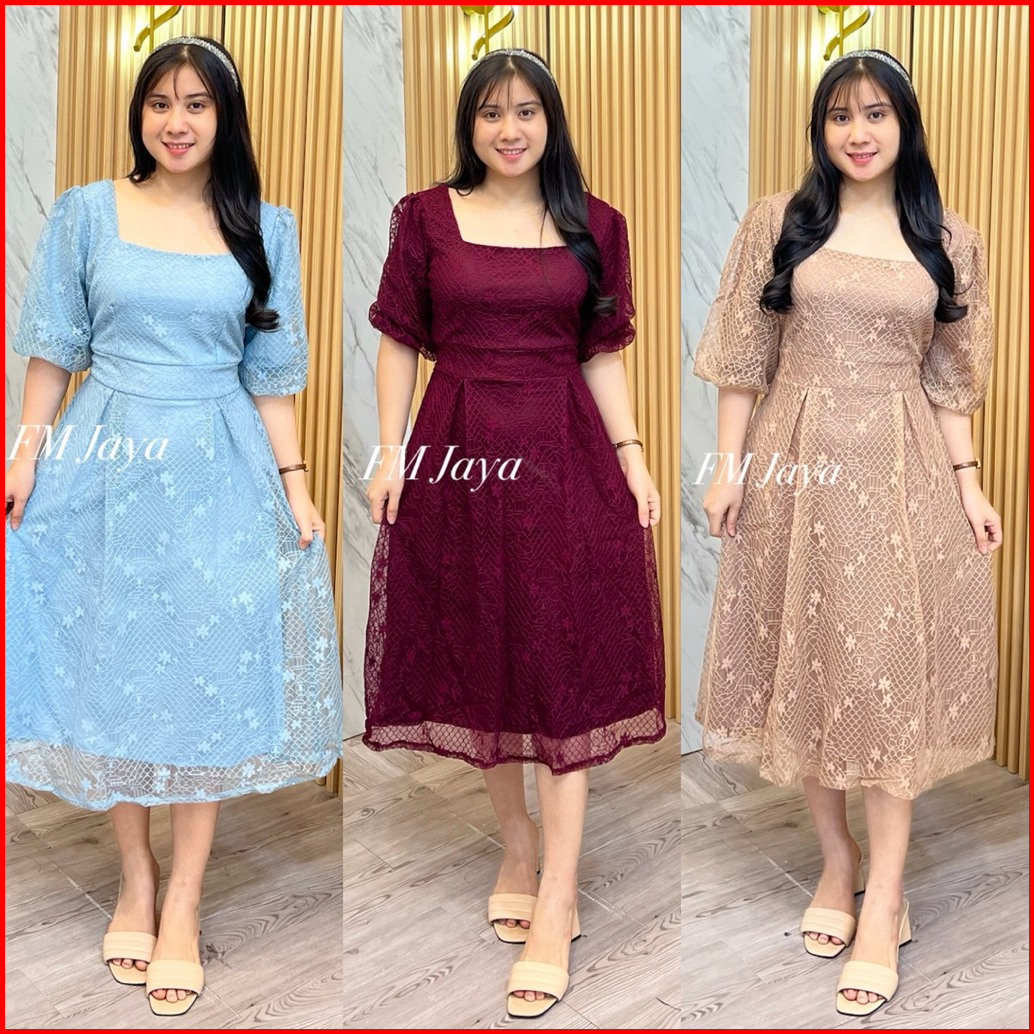 Gdg Dress Wanita 4381 Dress Lace Cny Dres Wanita Dres Brukat Natal Imlek
