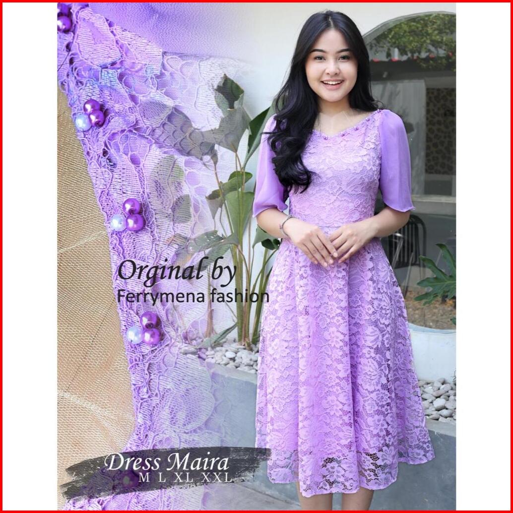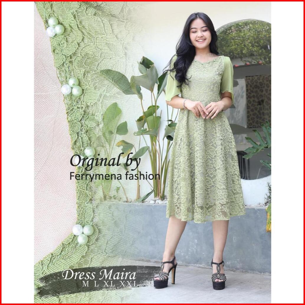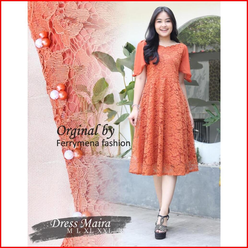 Dres Brukat Maira Kekinian - Dress Wanita Korean Style - Dres Brukat Natal Dan Pesta Tahun Baru 2024