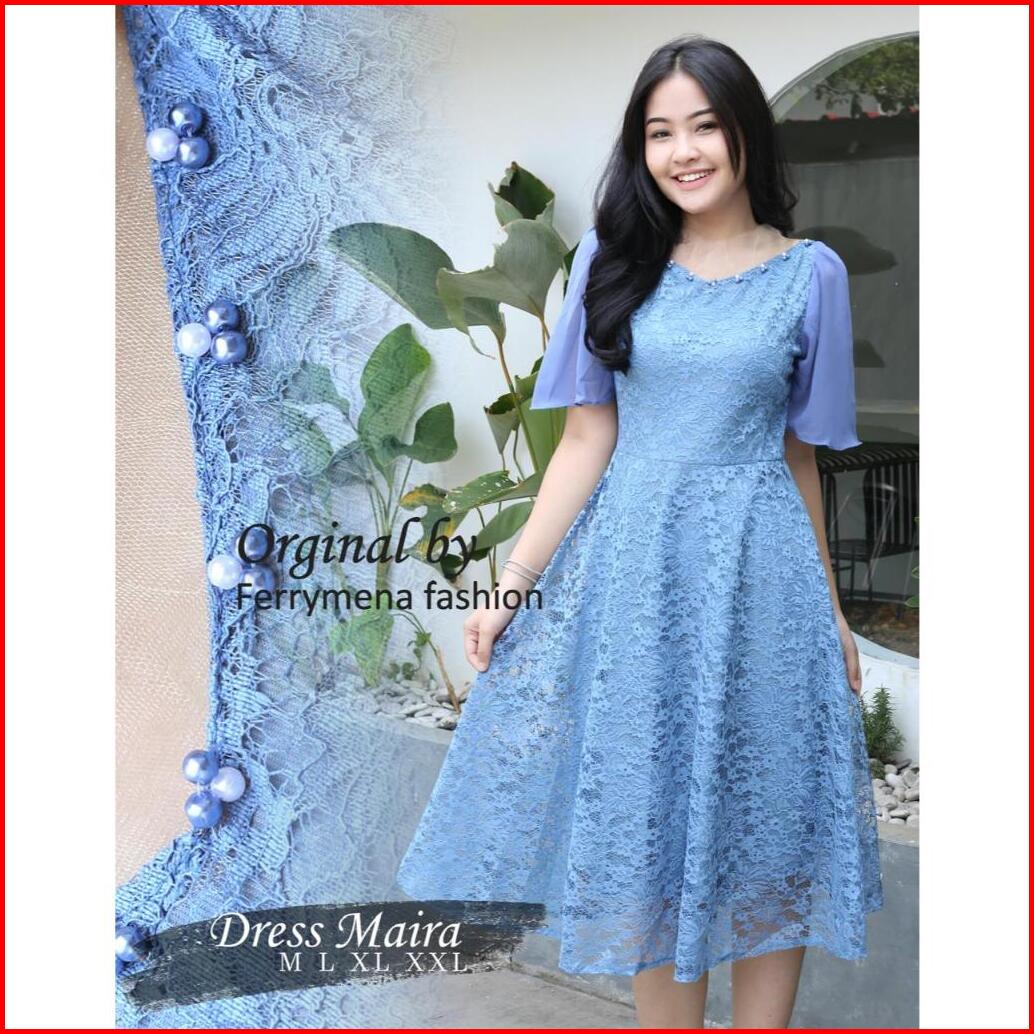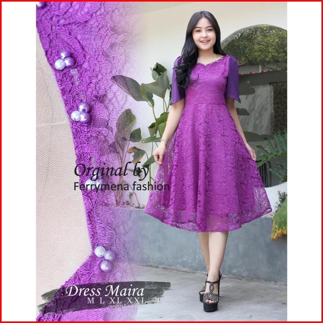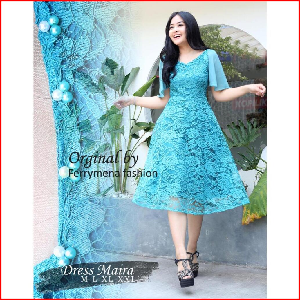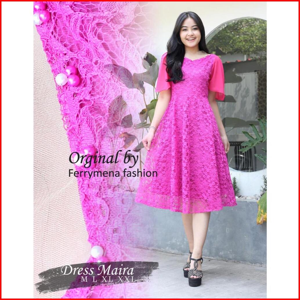 Dres Brukat Maira Kekinian - Dress Wanita Korean Style - Dres Brukat Natal Dan Pesta Tahun Baru 2024