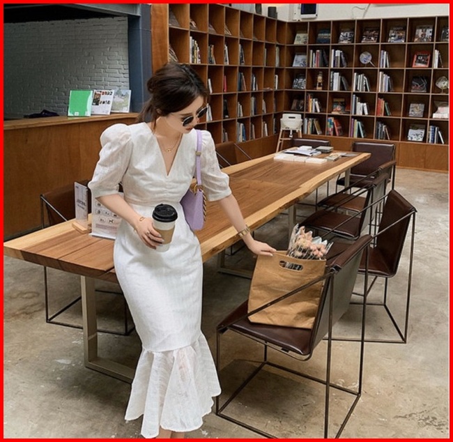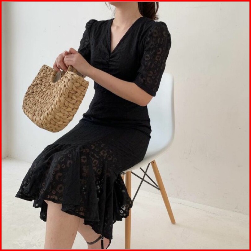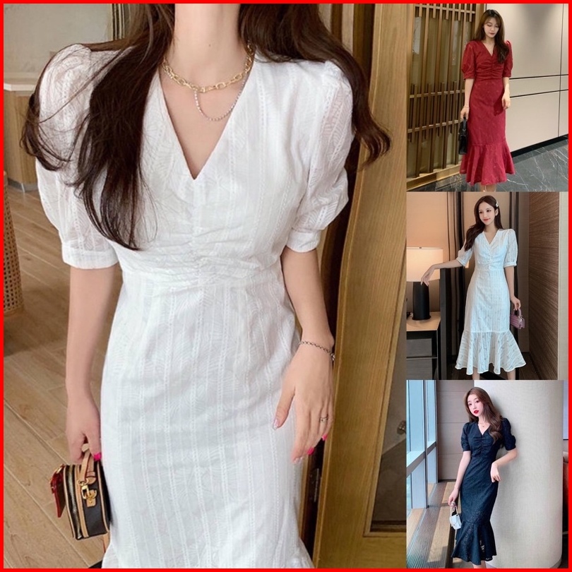 Ada Size Jumbo D1330 Mermaid Korean Style Vintage Midi Dress Natal Dinner Simple Duyung
