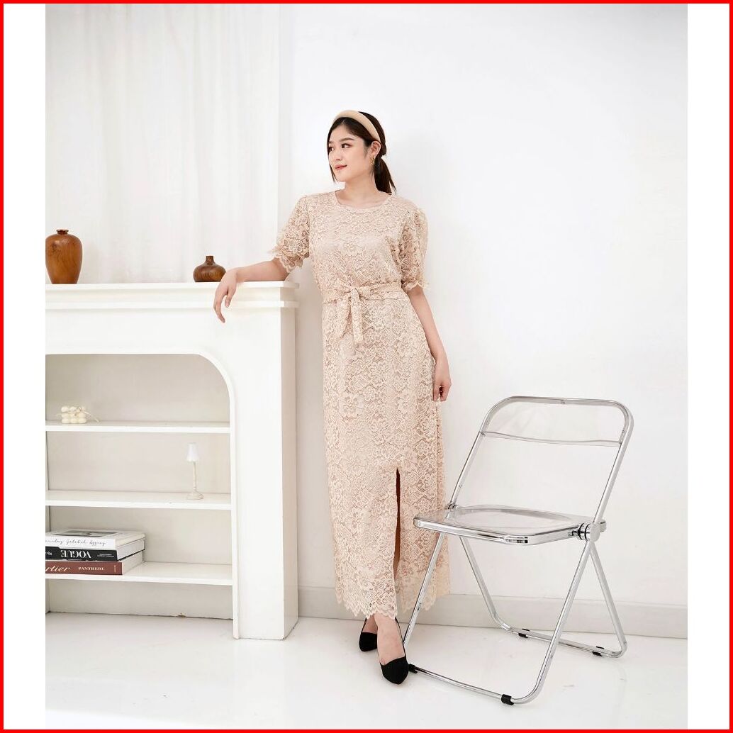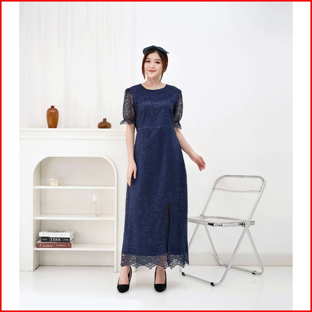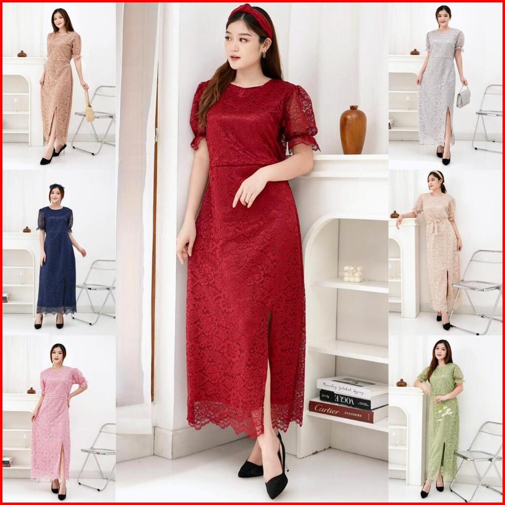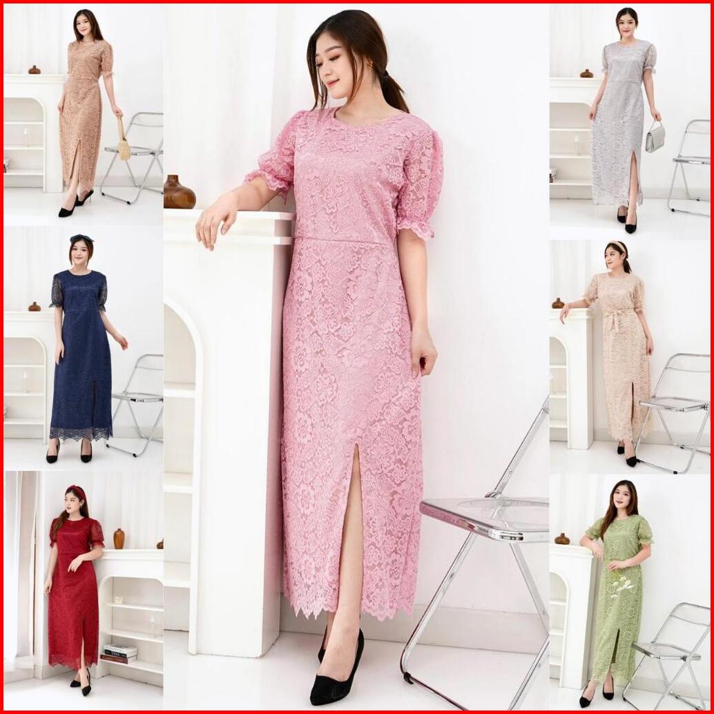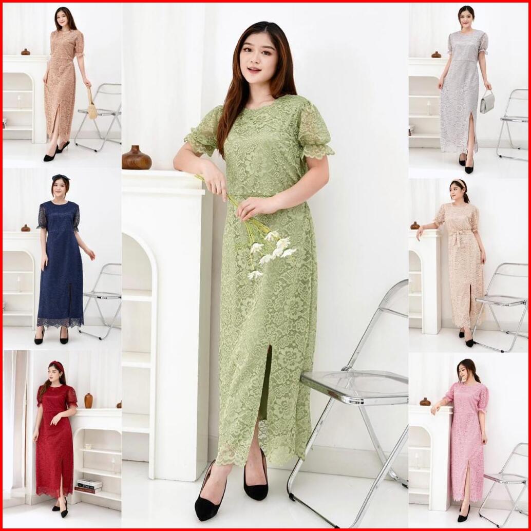 Suplier Long Dress Fuji Brukat Corneli Belt 7 Warna Dres Pesta Kondangan Natal Gereja Imlek