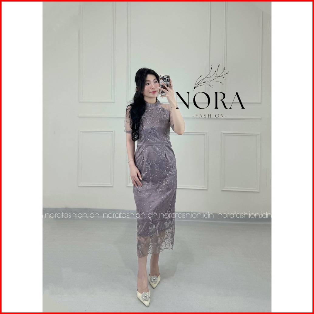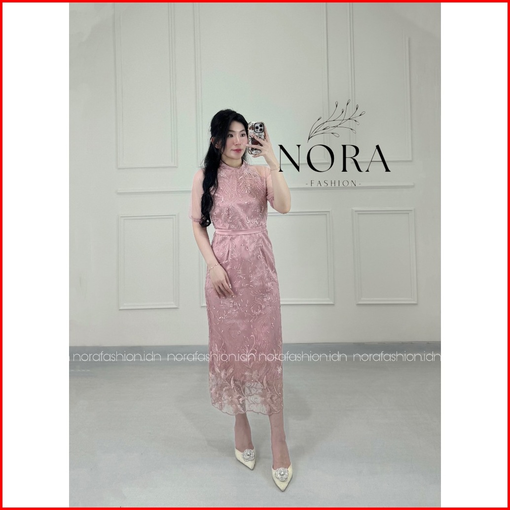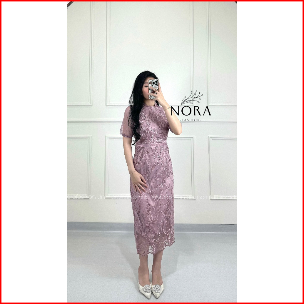 New Elisa Dress M-xl - Nora Fashion - Dress Pesta - Dress Natal - Dress Kondangan - Dress Tile Bordir Wanita - Dress Ele