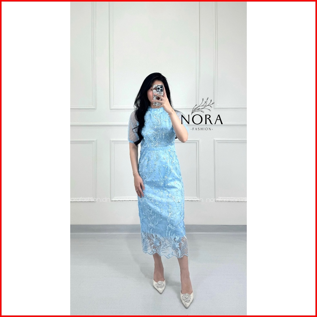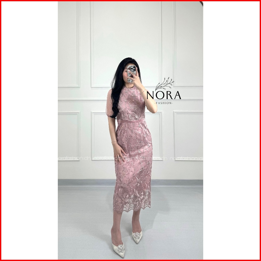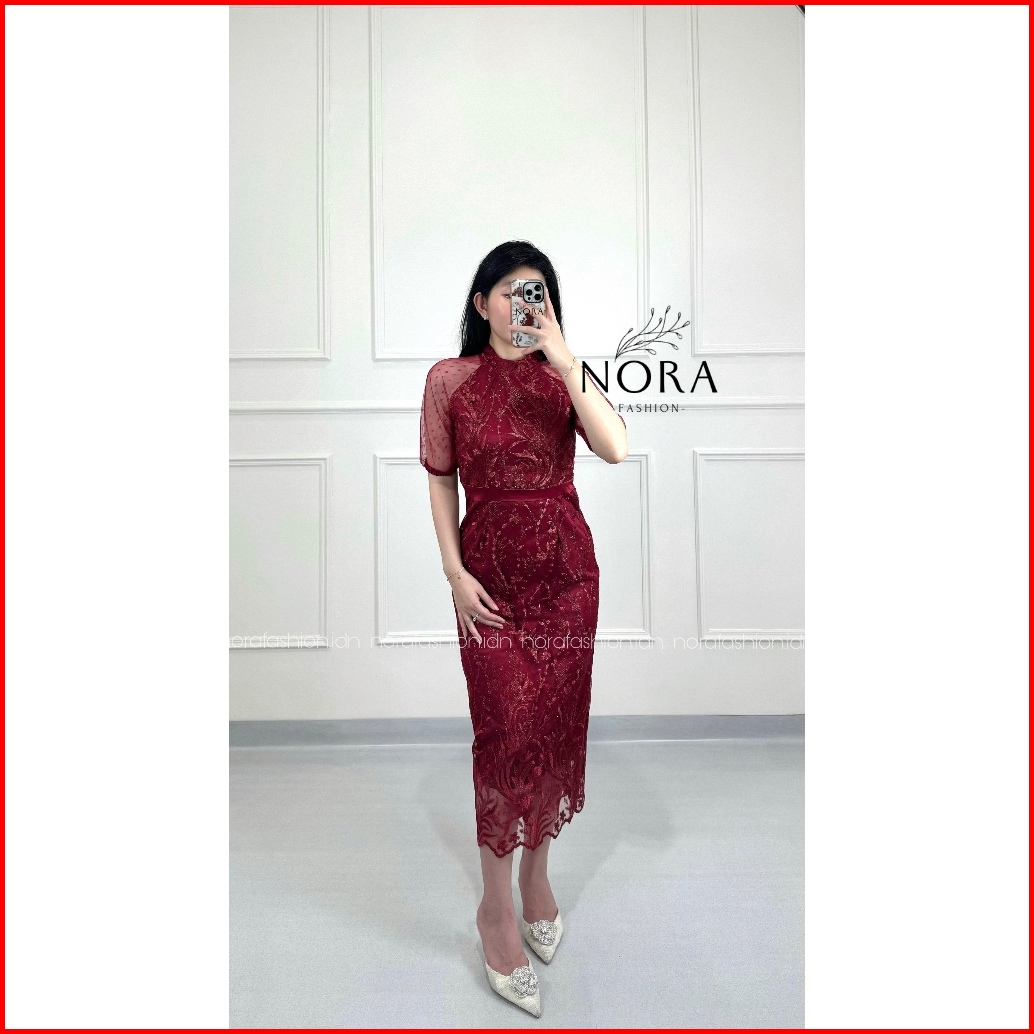 New Elisa Dress M-xl - Nora Fashion - Dress Pesta - Dress Natal - Dress Kondangan - Dress Tile Bordir Wanita - Dress Ele