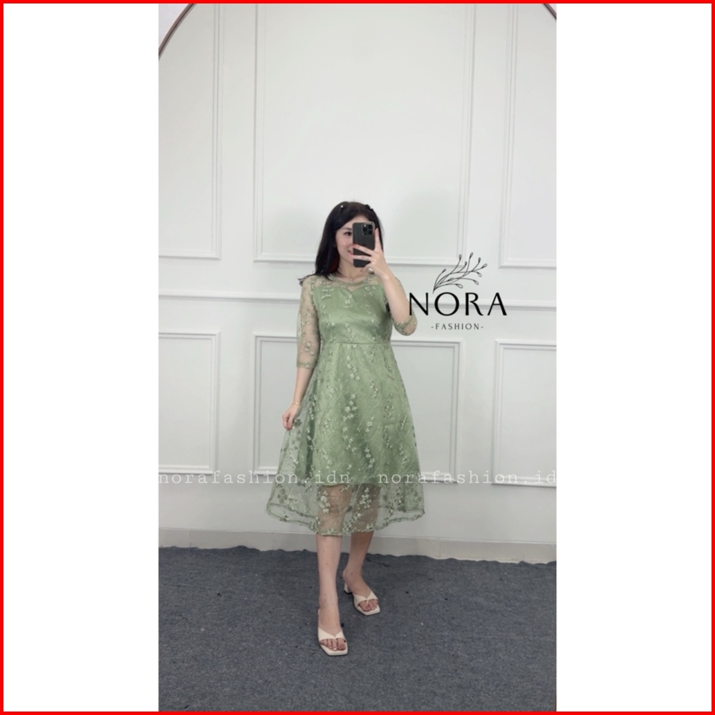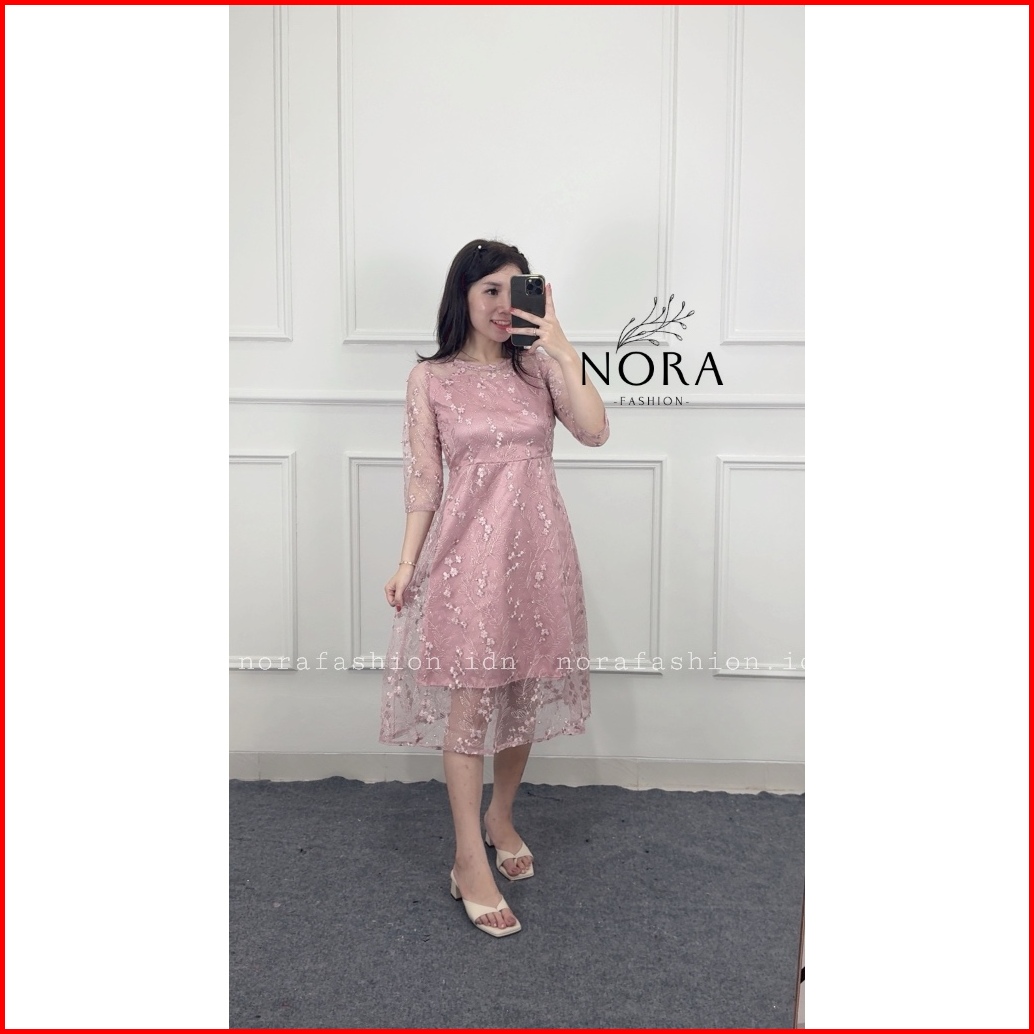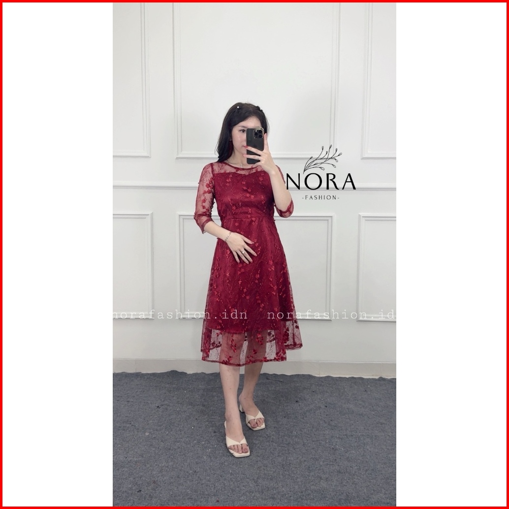 Evellyn Dress M-xl - Nora Fashion - Dress Pesta - Dress Natal - Dress Brukat Kondangan - Tile Mutiara