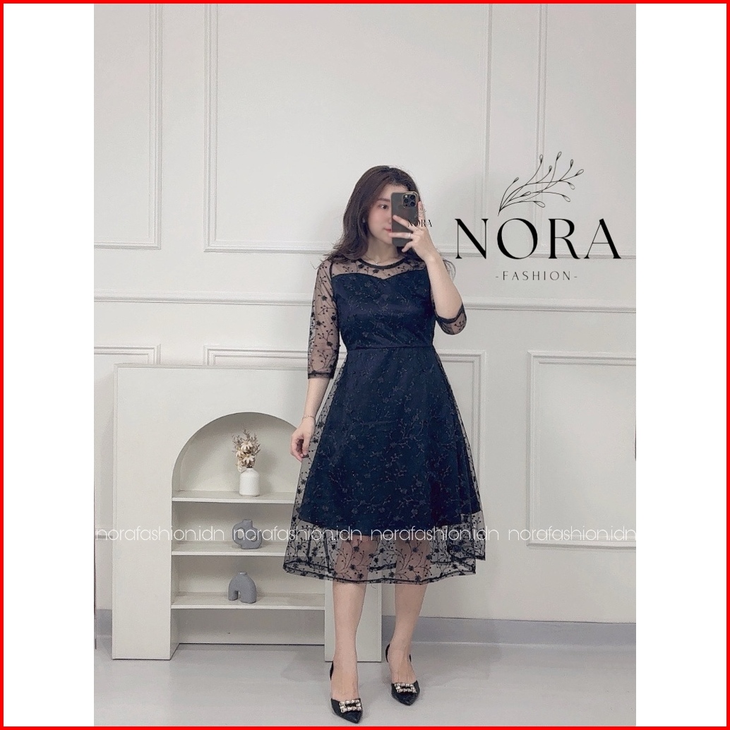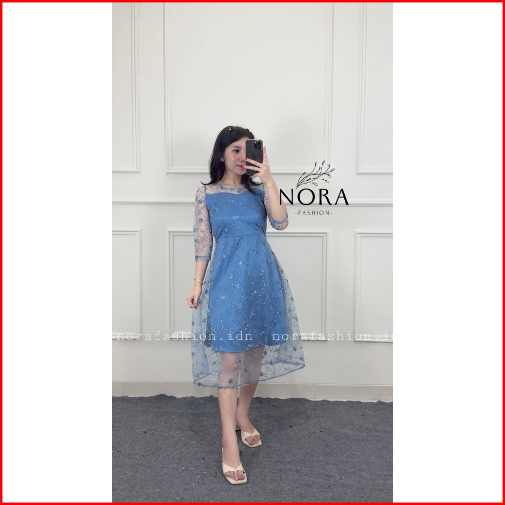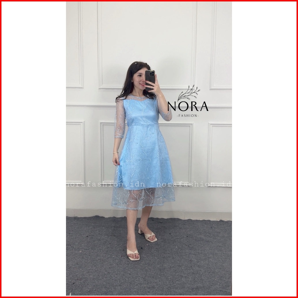 Evellyn Dress M-xl - Nora Fashion - Dress Pesta - Dress Natal - Dress Brukat Kondangan - Tile Mutiara