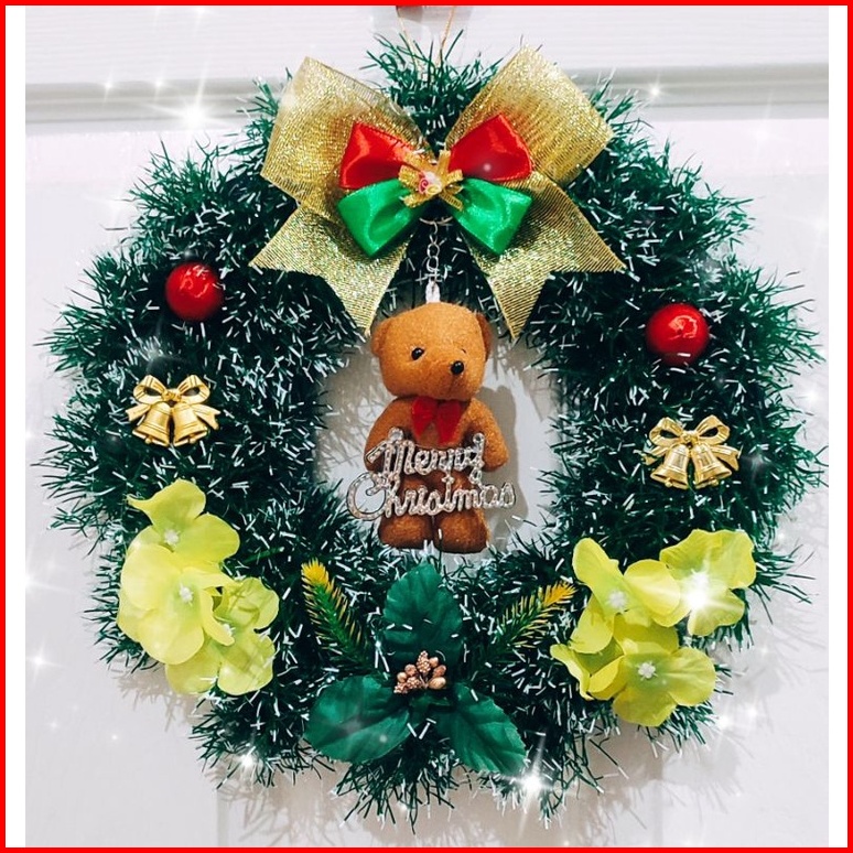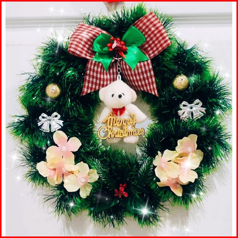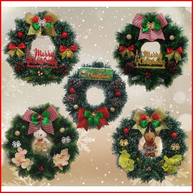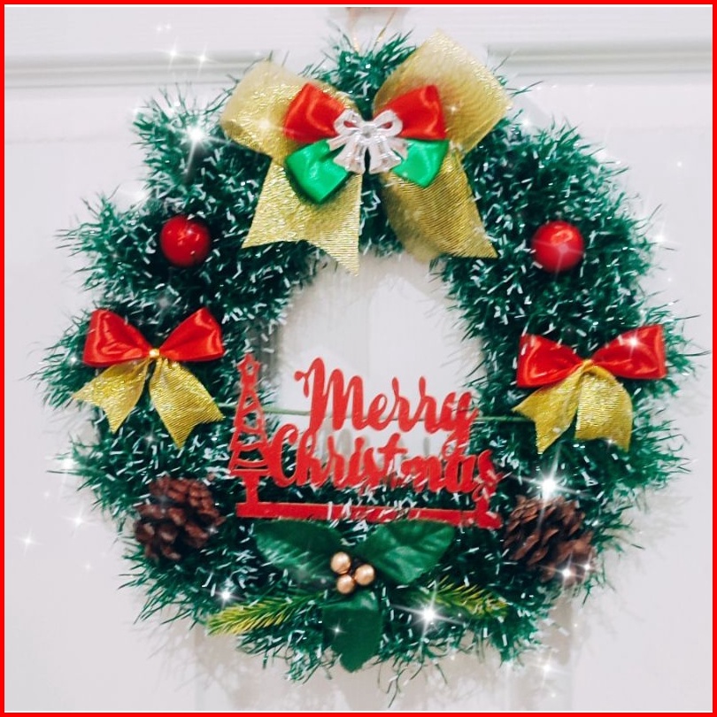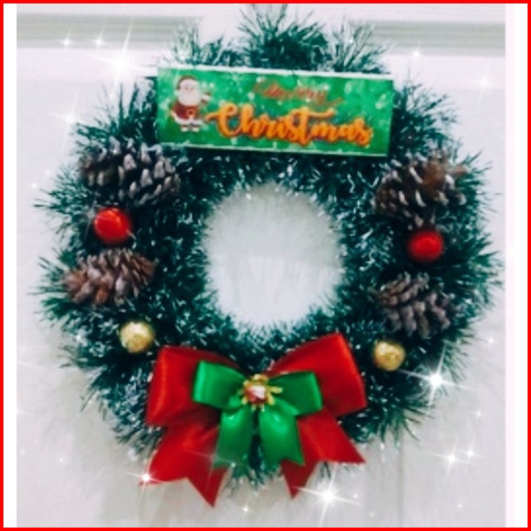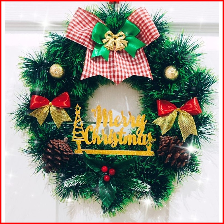New Krans Hijau Medium Hiasan Natal Size 28cm