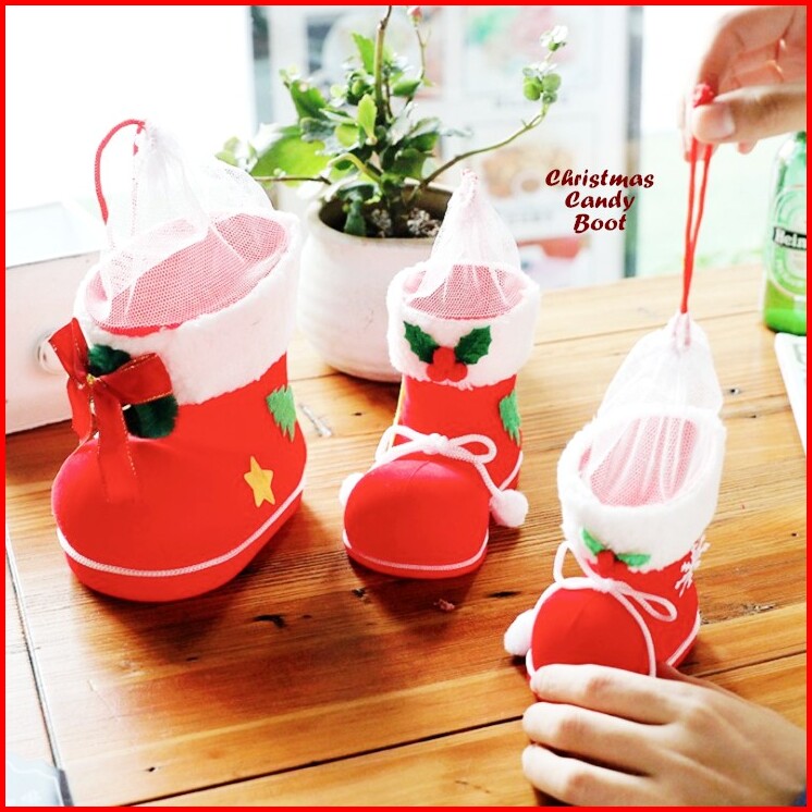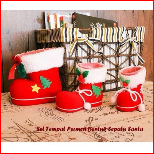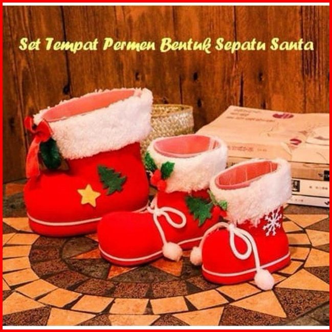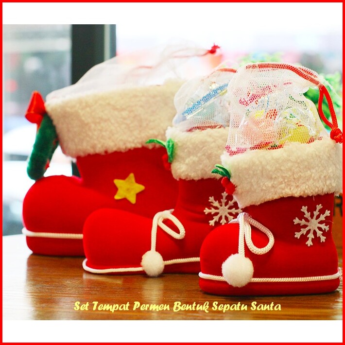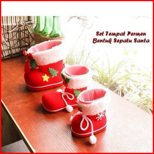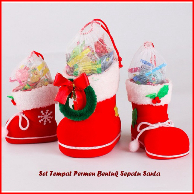 Isi 3 Pcs Christmas Candy Boots Set Tempat Permen Sepatu Santa 1 Set Isi 3 Pcs Ukuran Berbeda