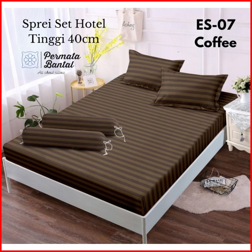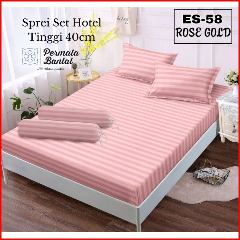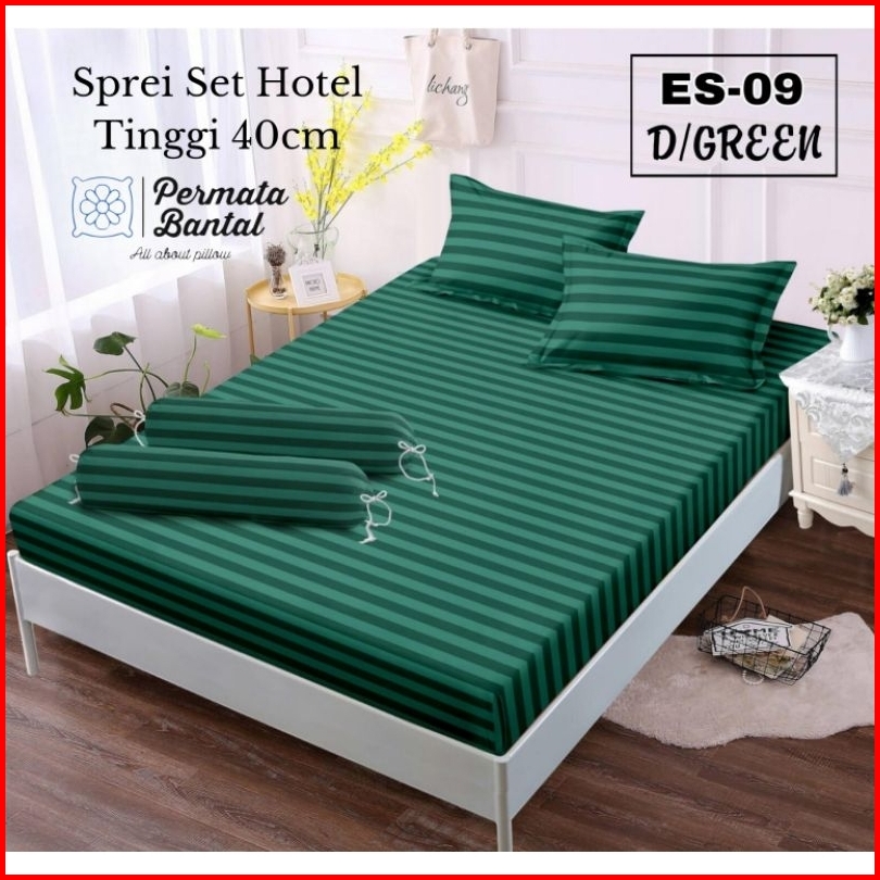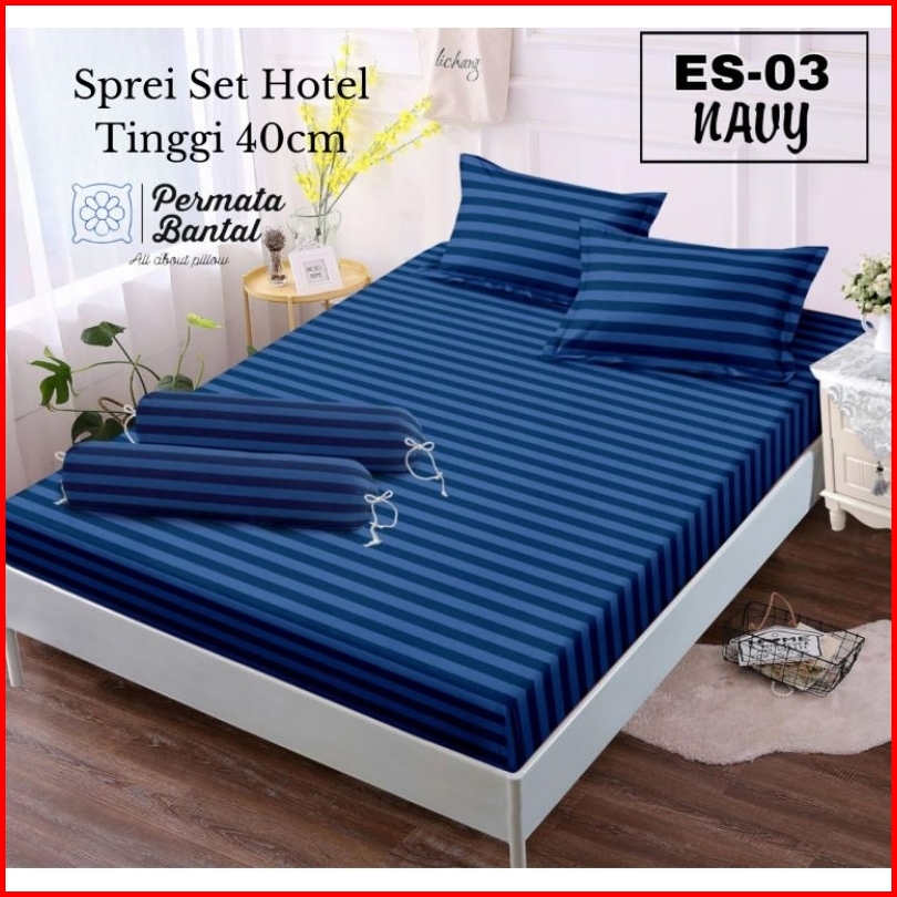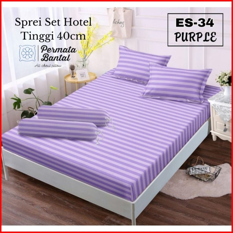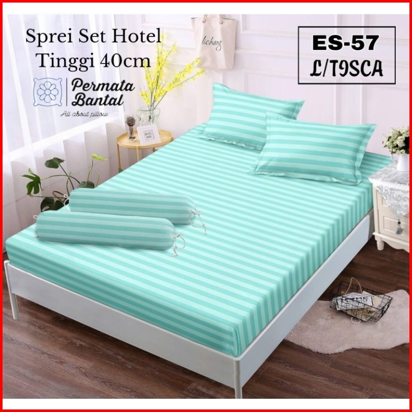Sprei Set Hotel Microtensel Tinggi 40cm Motif Salur Karet Double