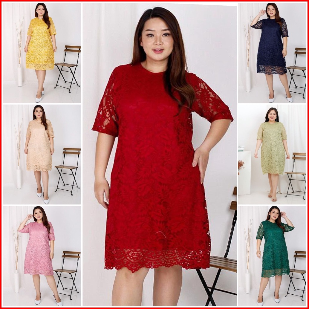 Size S - Xxl Jumbo Dress Big Size Brukat Jumbo Dres Brokat Xxl Bigsize Xxxl Dress Natal Imlek Termurah