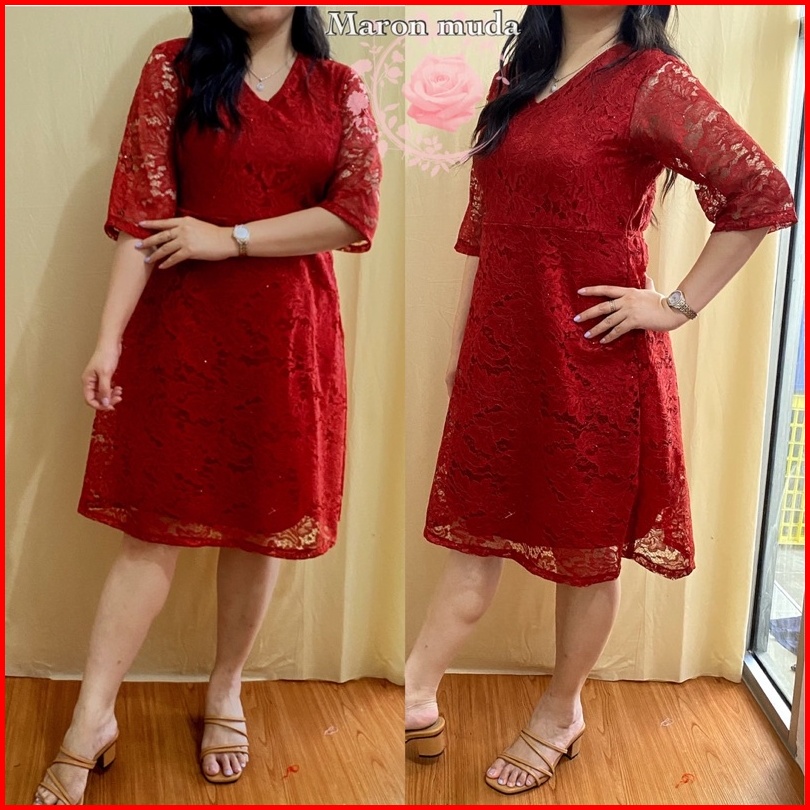 Dress Viola Dress Wanita Dress Brukat Terbaru Size L Xl Dress Imlek Dress Natal