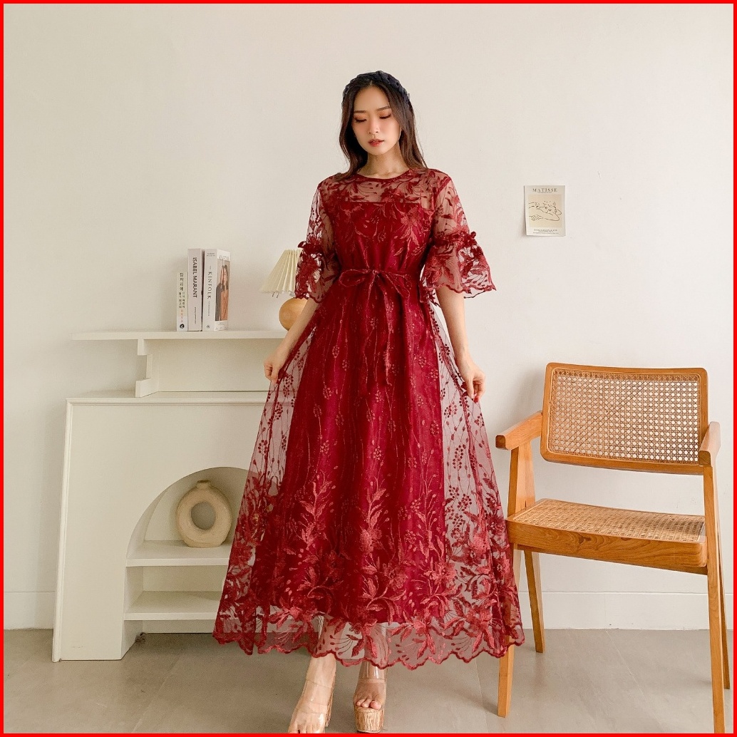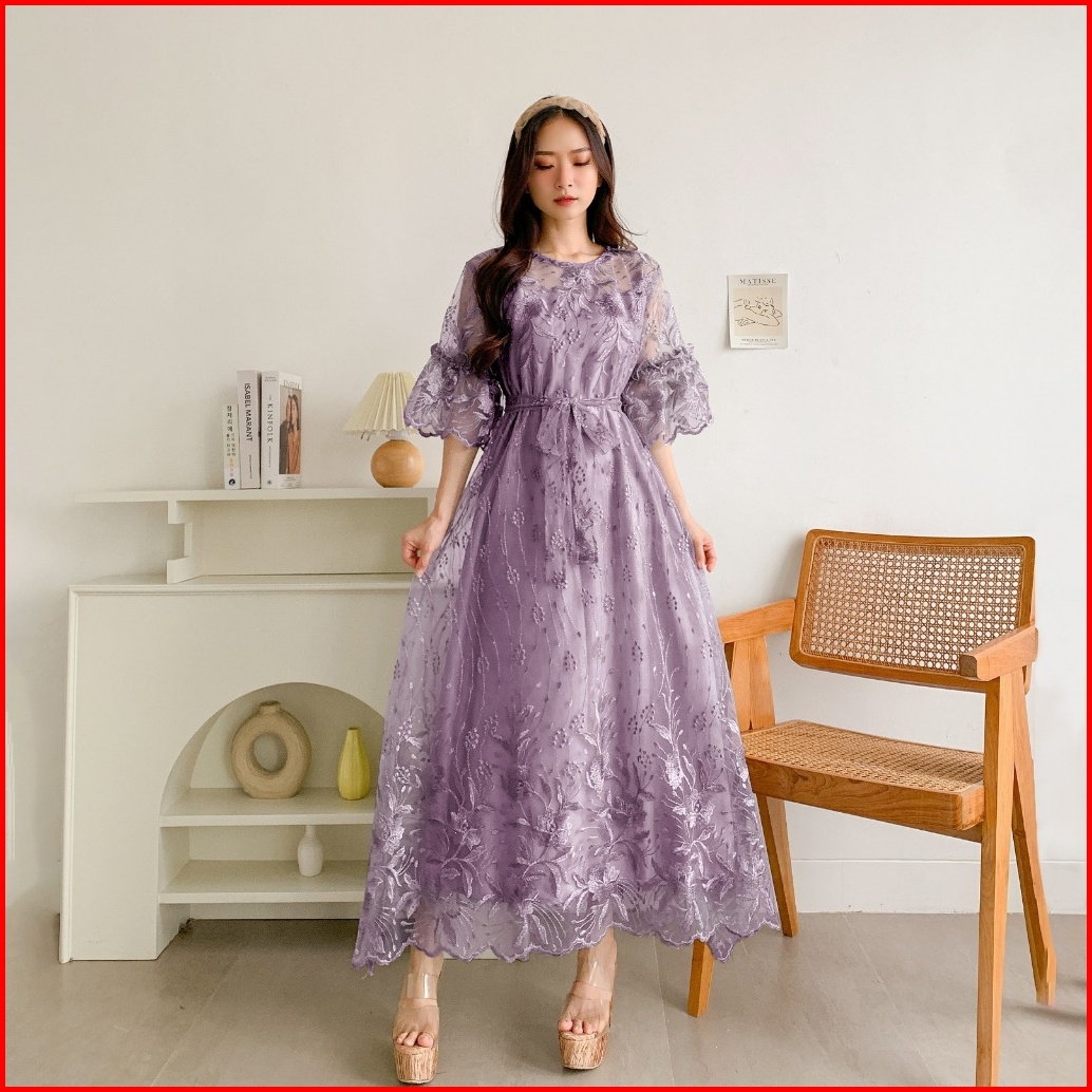 Daniella M L Xl Long Dress Brokat Wanita Gaun Pesta Kondangan Maxi Dress Natal Terbaru 2023 Elegan