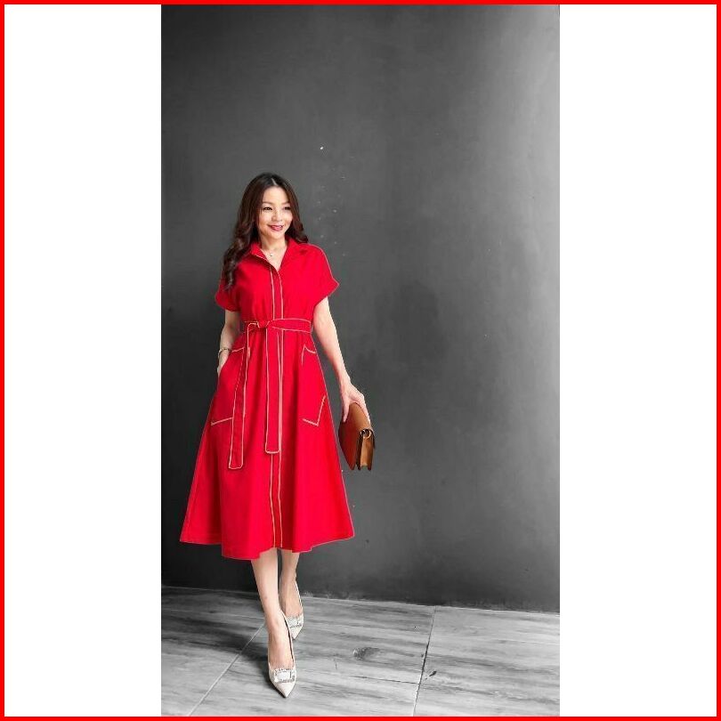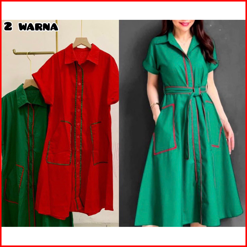 Celia Dress Include Belt Dress Natal Merah Hijau Botol 8189 Dress Merah Pink Muda Fanta Imlek Cny Valentine