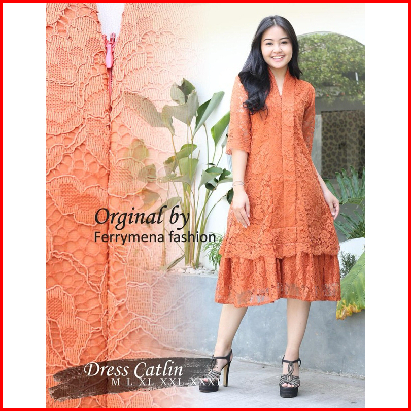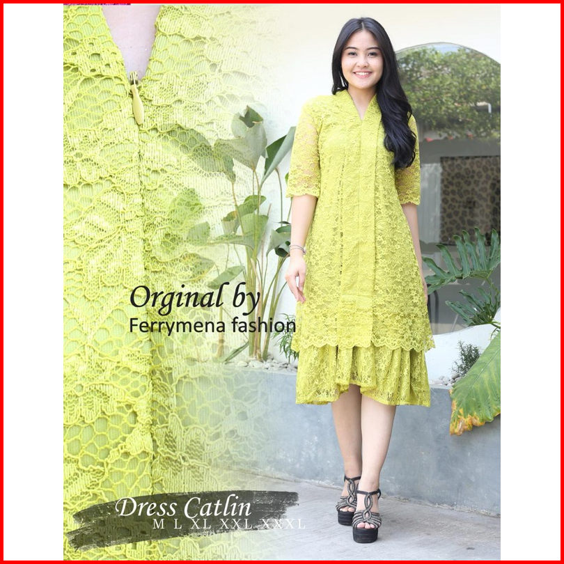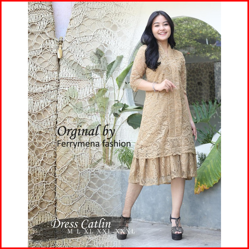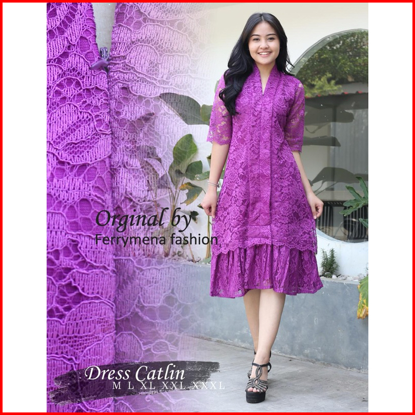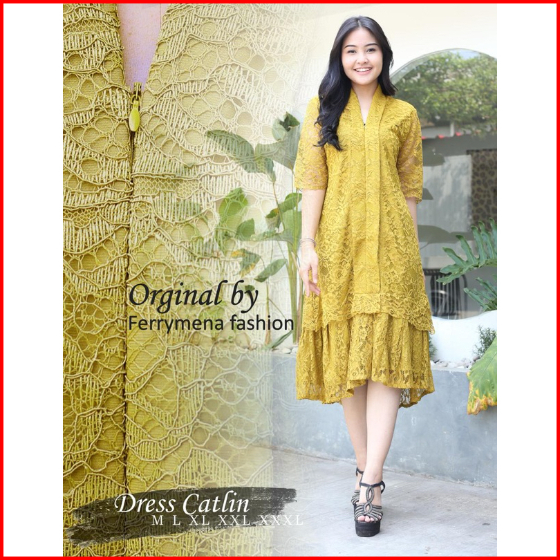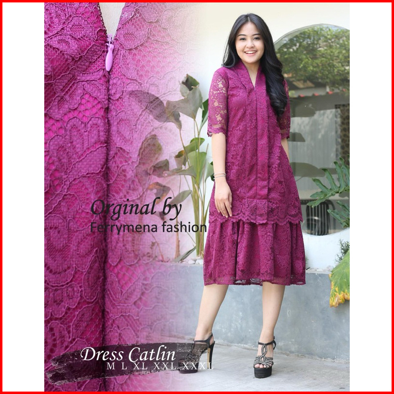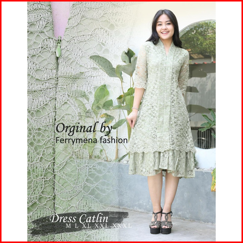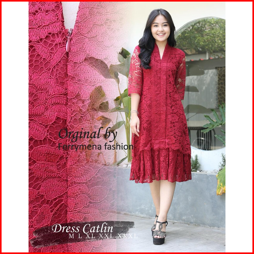 Dress Catline Brukat Motif Floy Dress Natal Dress Pesta Tahun Baru Dress Jumbo