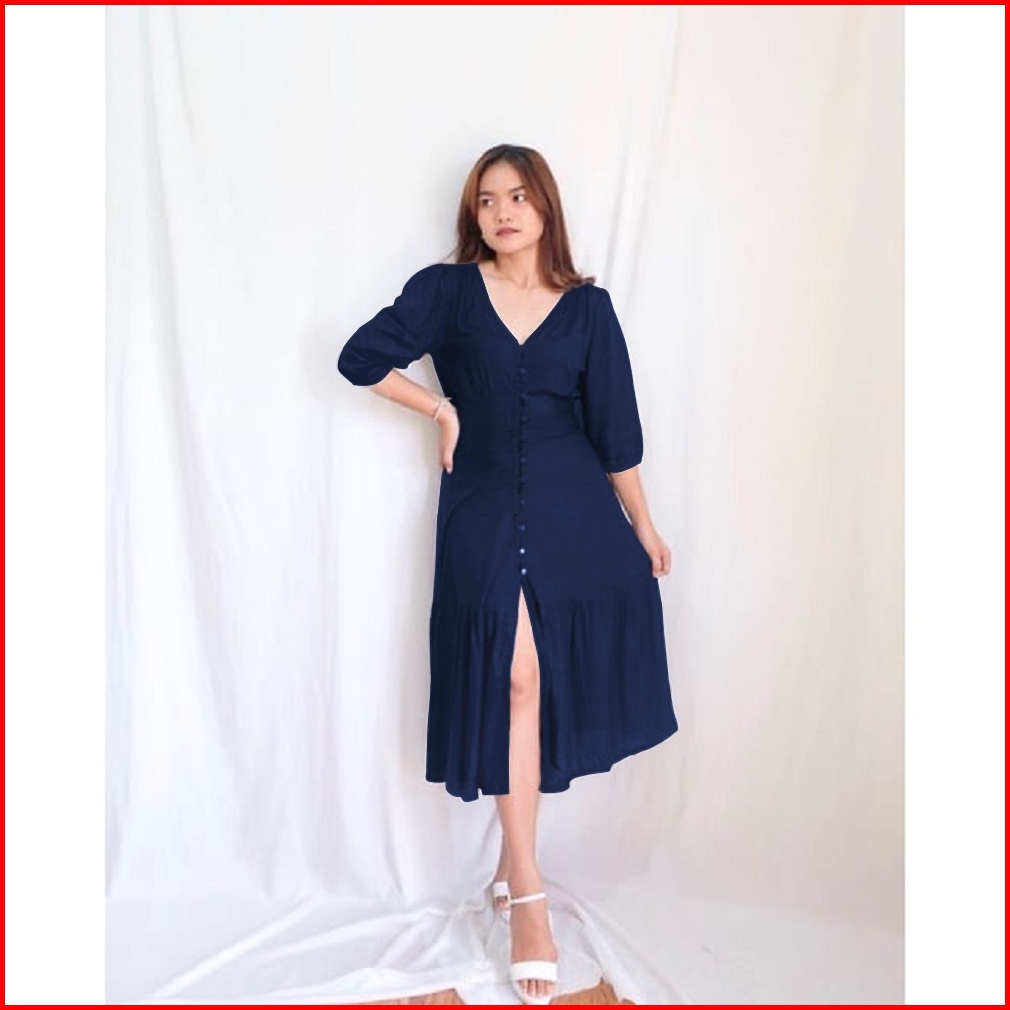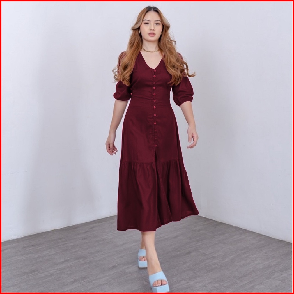 Natal Dress Clavi Dress Natal Midi Korean Style Dress Wanita Bahan Rayon Big Size