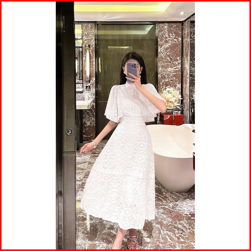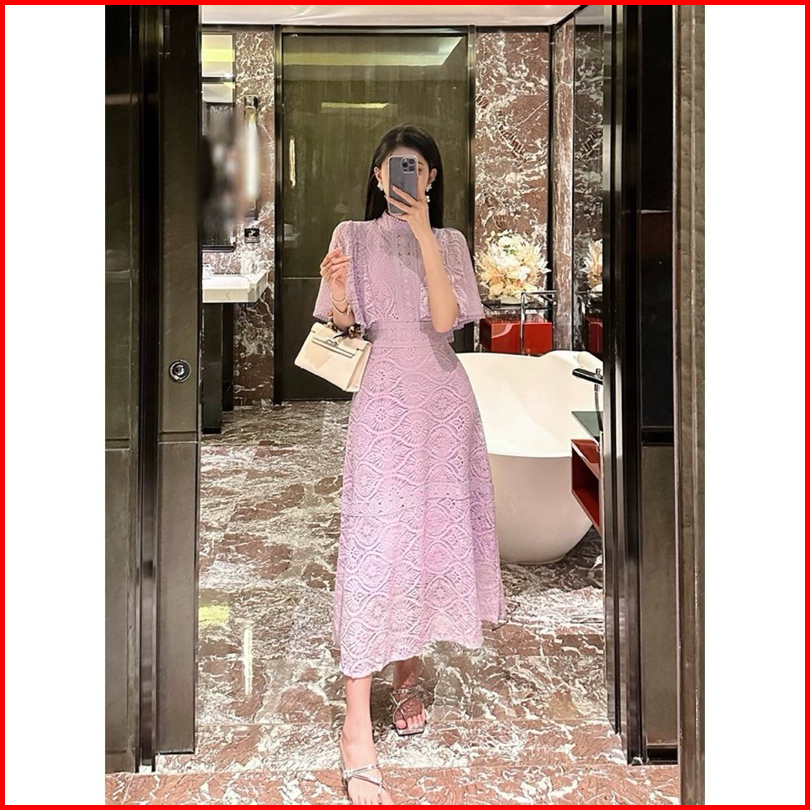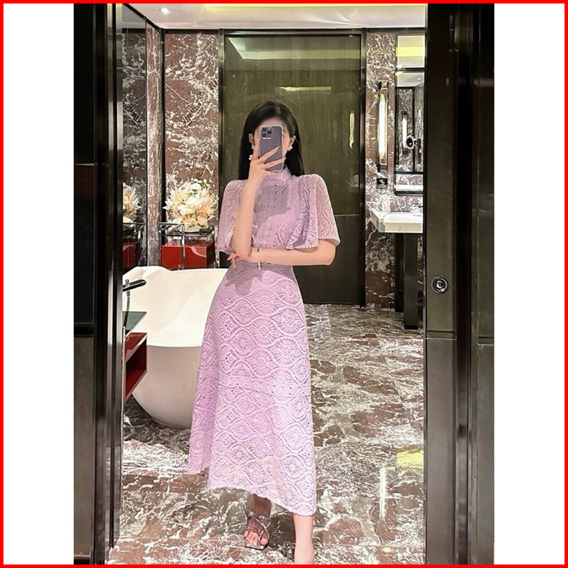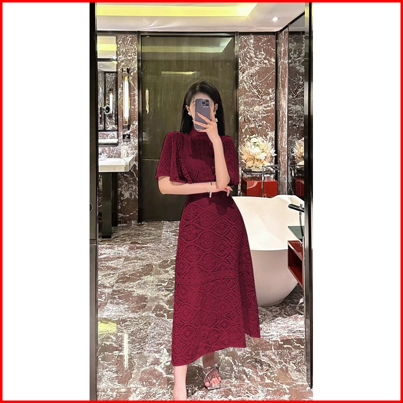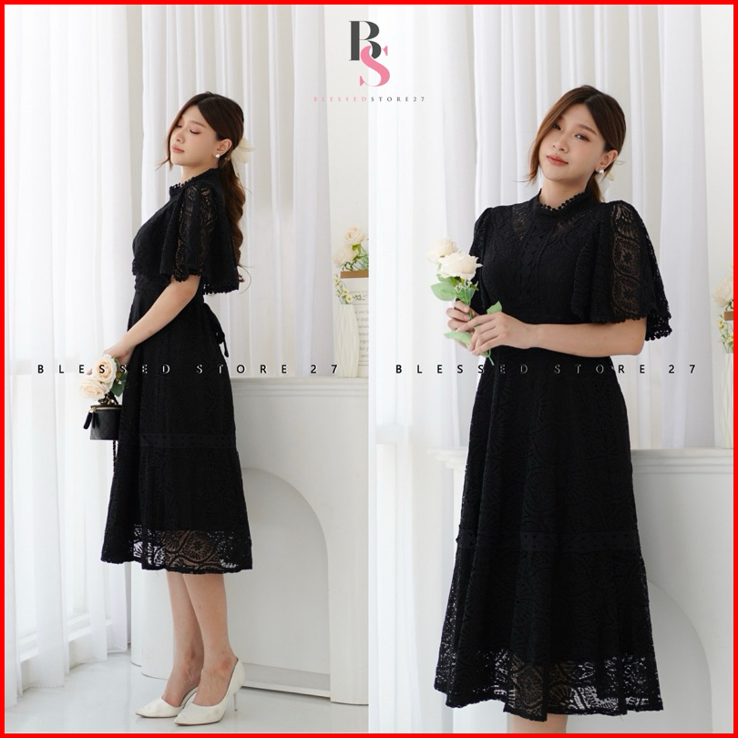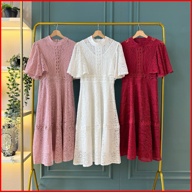 D1559 Dionysia Korean Style Brocade Lace Vintage Midi Dress Pesta Simple Elegant Polos Gereja