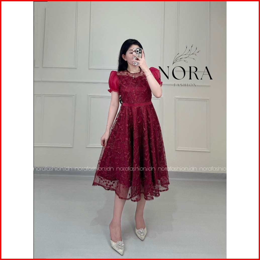 Cheryl Dress M-xl - Nora Fashion - Dress Pesta Wanita - Dress Tile Mutiara - Dress Kondangan - Dress Natal