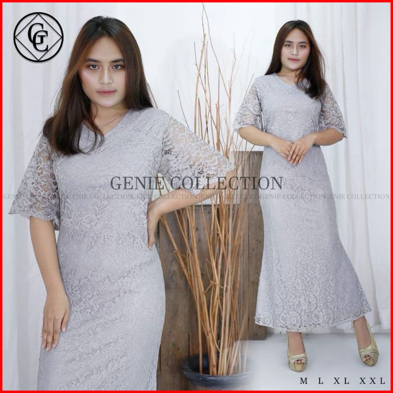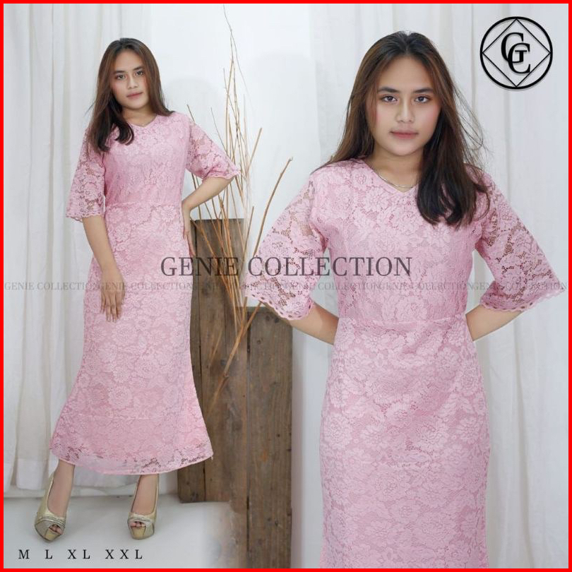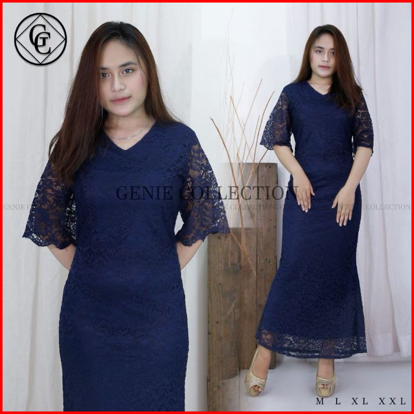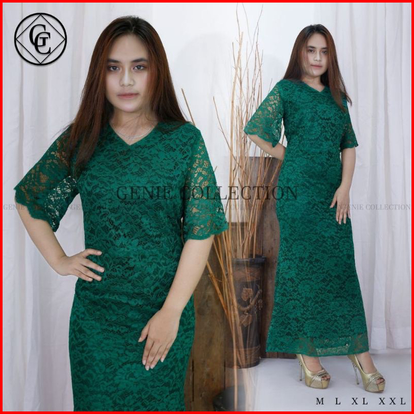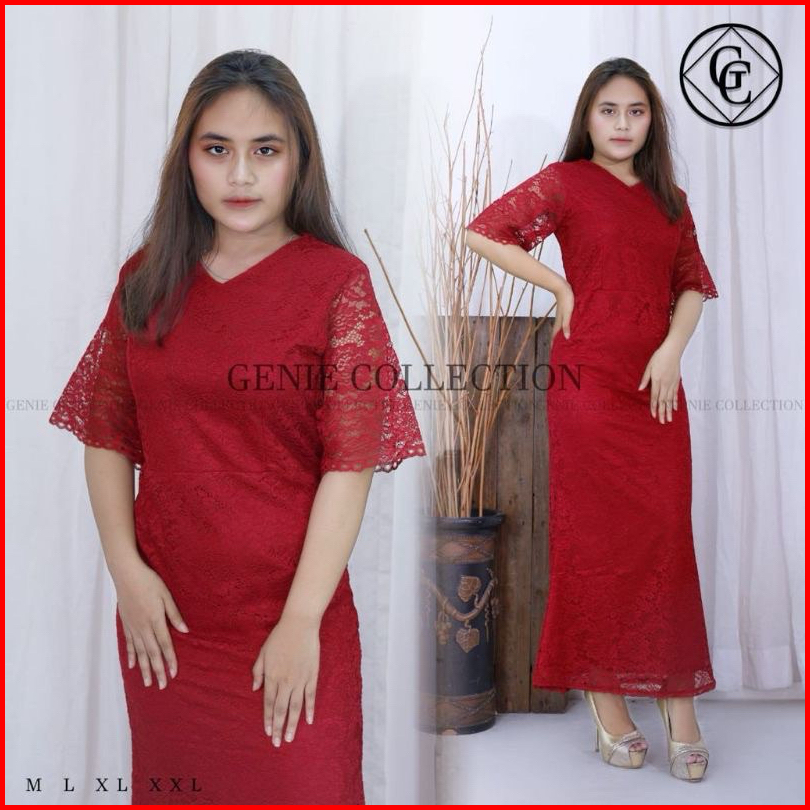 Dress Cristine Brokat Mewah Dress Brokat Ful Furing Dress Natal Dan Tahun Baru Imlek Long Dress