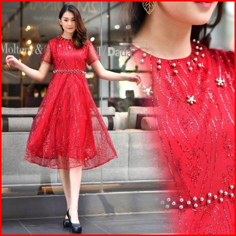 Best Seller-dress Natali Tille Payet Dress Wanita Remaja Kekinian Dress Natal Terbaru Dress Imlek Gaun Cantik Dress Mewa