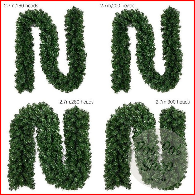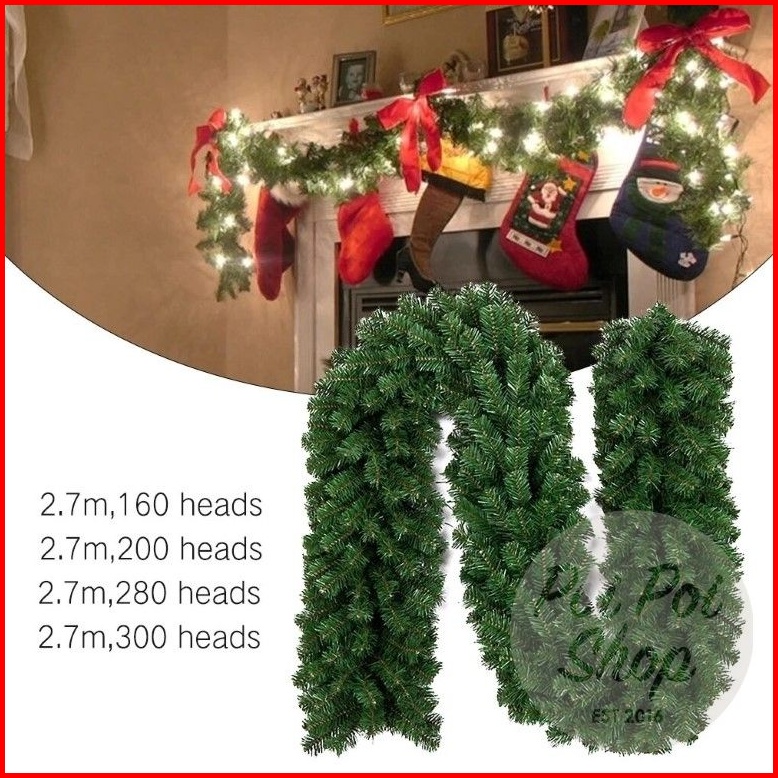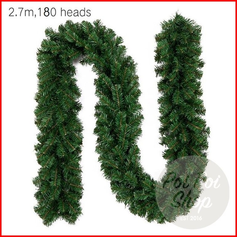Garland Daun Kawat 2.7m Murah Hiasan Natal Daun Dekorasi Natal Christmas Berkualitas Lilit Kawat Garland Polos Grosir