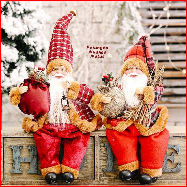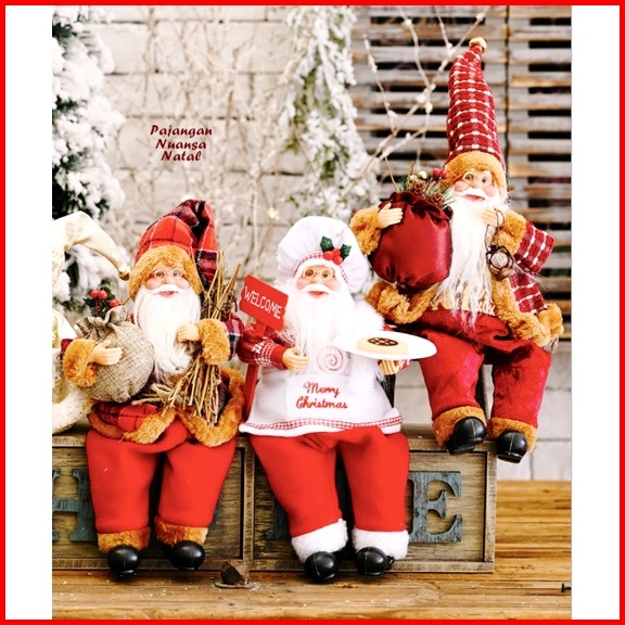 Pajangan Nuansa Natal Santa Duduk Boneka Santa Dekorasi Natal Hiasan Natal Ornamen Natal Christmas Decoration Hiasan Nat