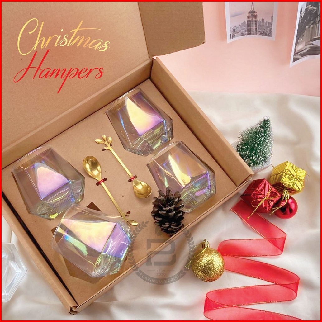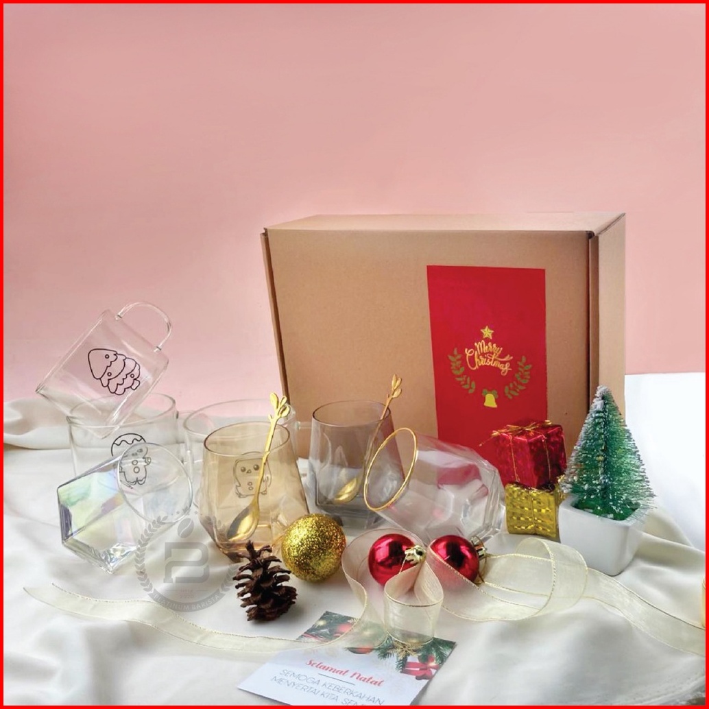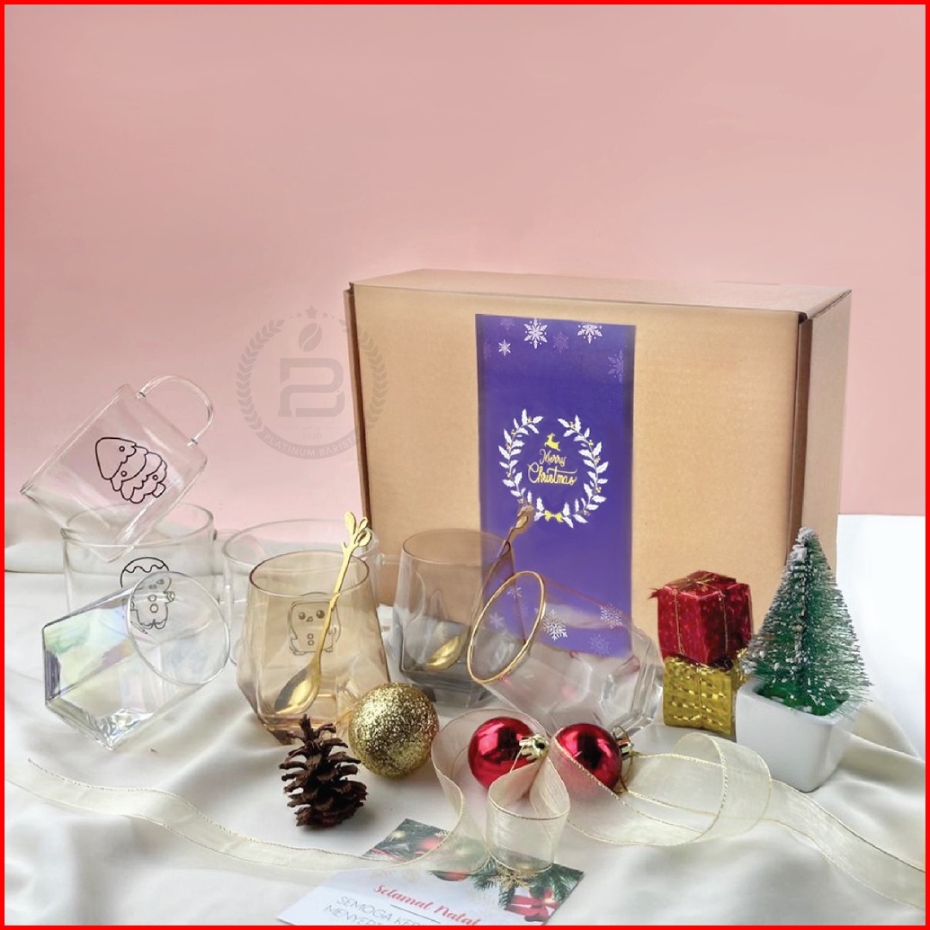 Christmas Hampers Gift Box Parcel Natal Glass Aestehtic Gelas Kaca Cantik Elegant Lucu
