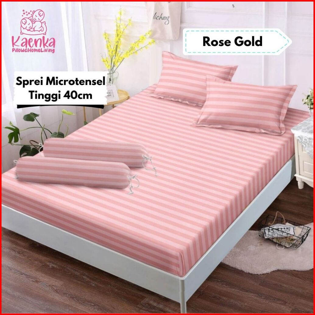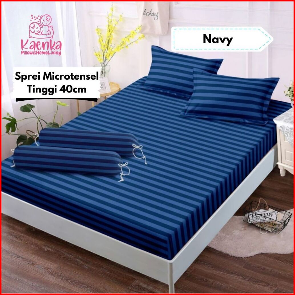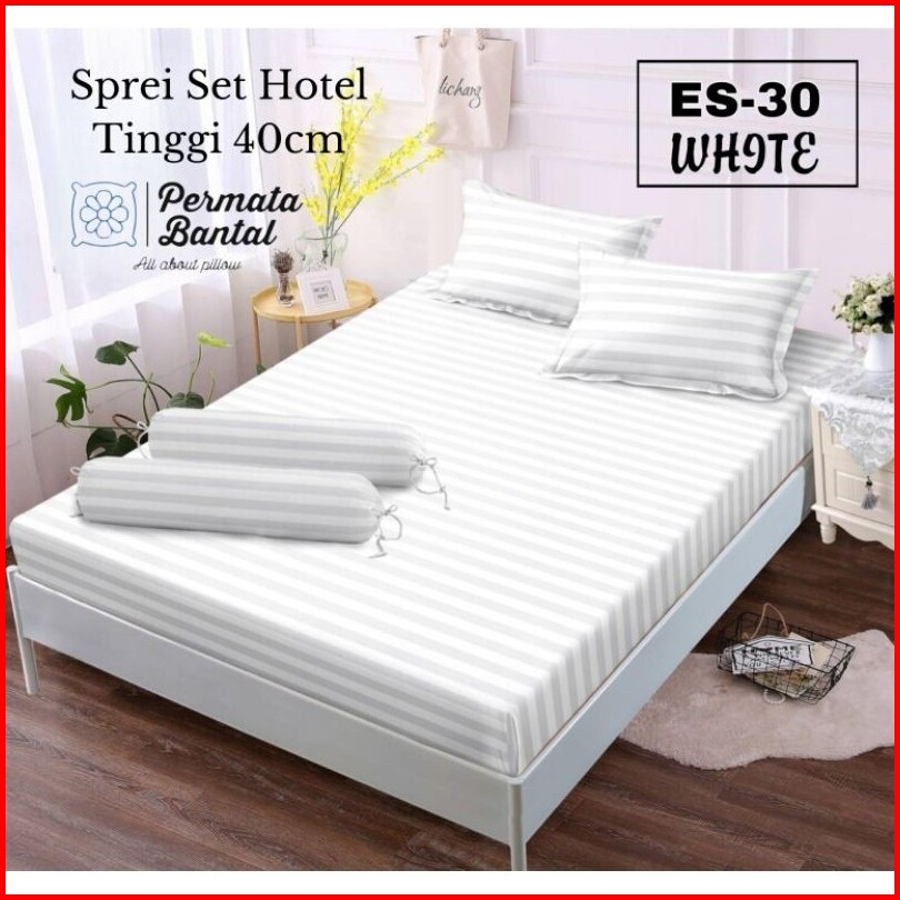 Sprei Set Hotel Microtensel Tinggi 40cm Motif Salur Karet Double