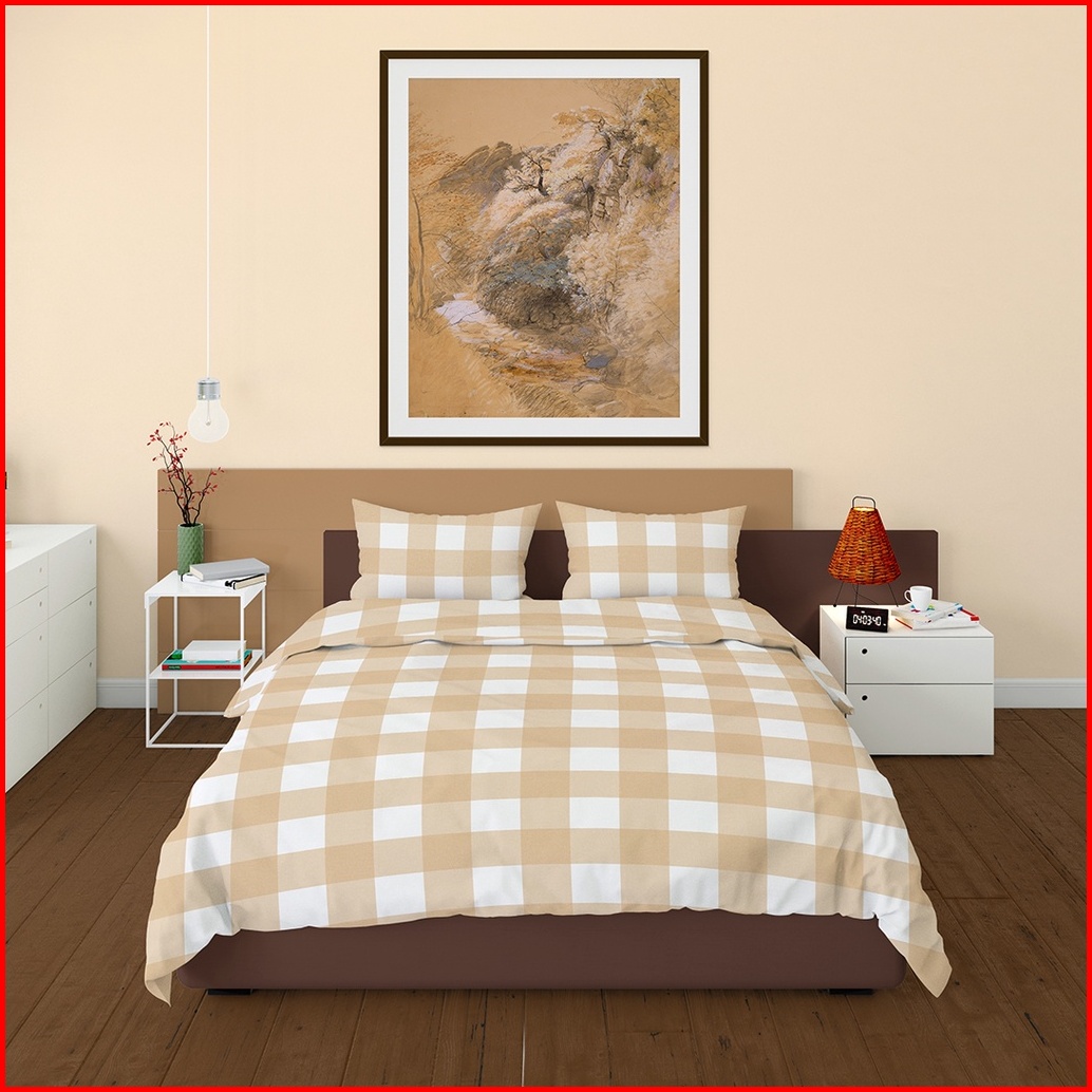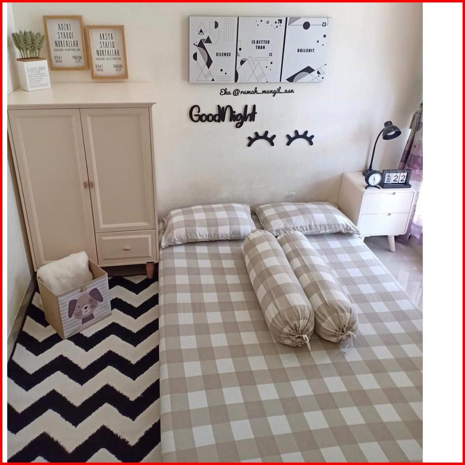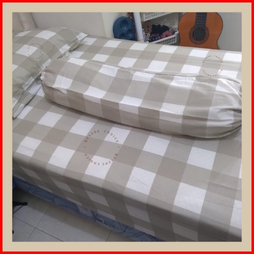 Sprei Aesthetic Korea Romantic Kotak Khaki Katun Jepang