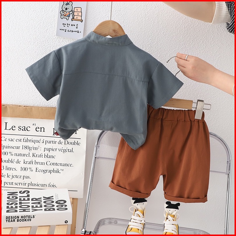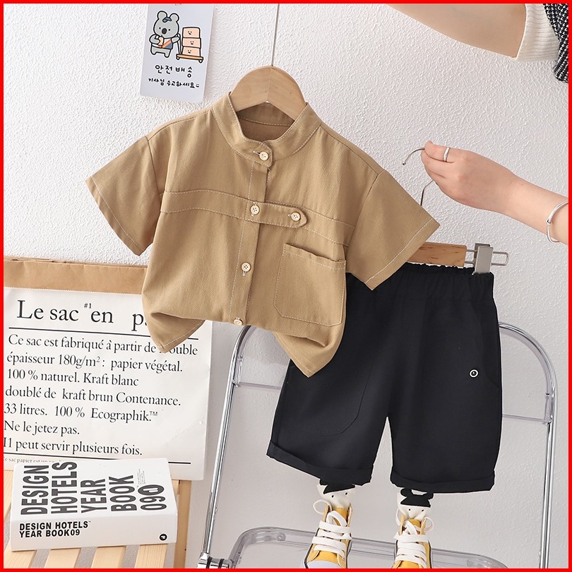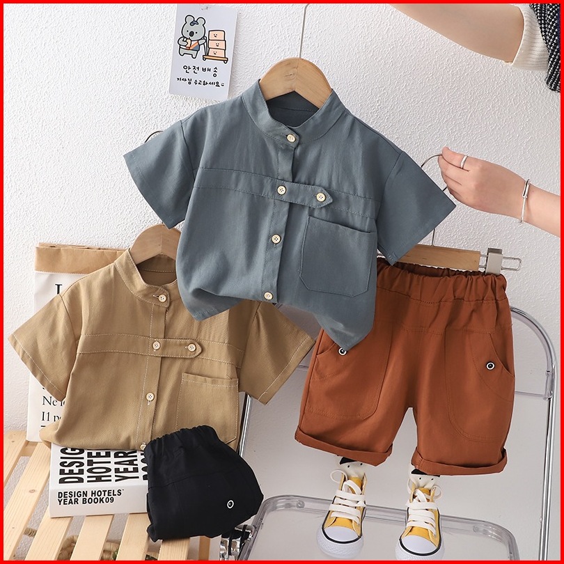 Setelan Kemeja Anak Laki Laki Import Stelan Kemeja Polos Lengan Pendek Balita Cowok Cewek Impor Kemeja Dengan Model Lida