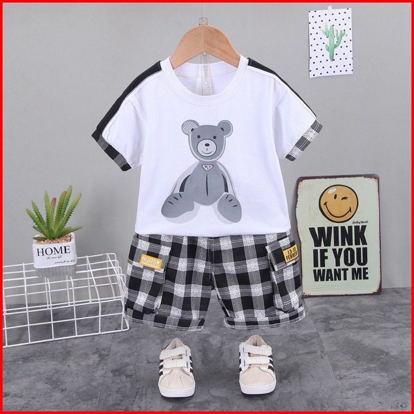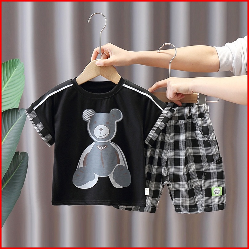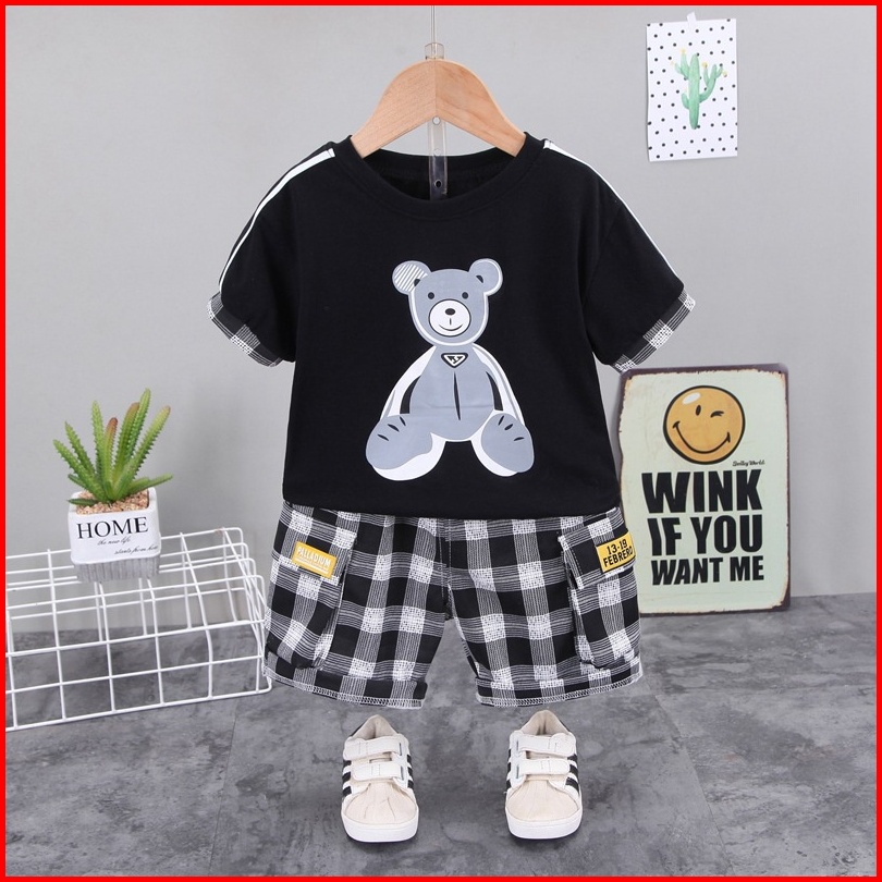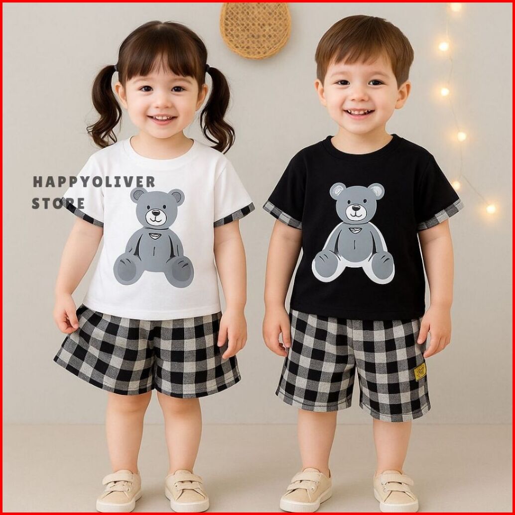 Promo 9.9 Happyoliver Set Retro Bear Ebv Setelan Kaos Anak Bayi Laki-laki Pendek 6bulan - 4tahun