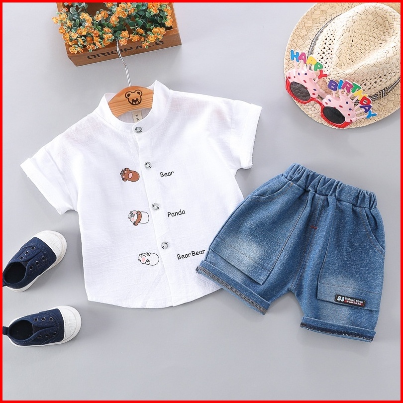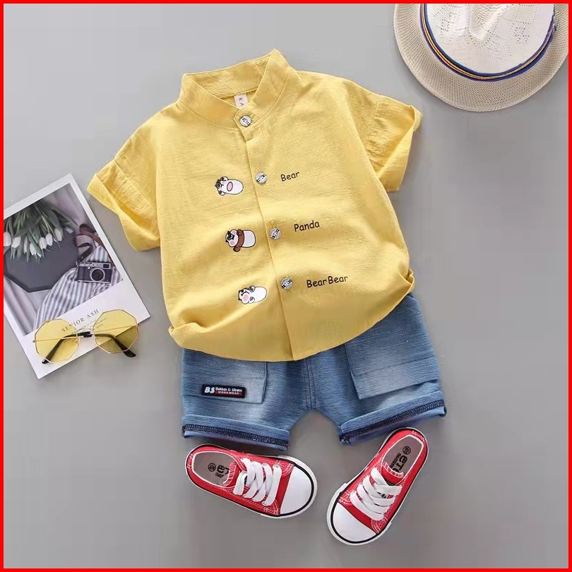 Promo 6.6 Plazababyku Set Kemeja Alfon Bear 212 Ebv Setelan Kemeja Bayi Laki-laki Setelan Kemeja Anak Laki-laki Lengan P
