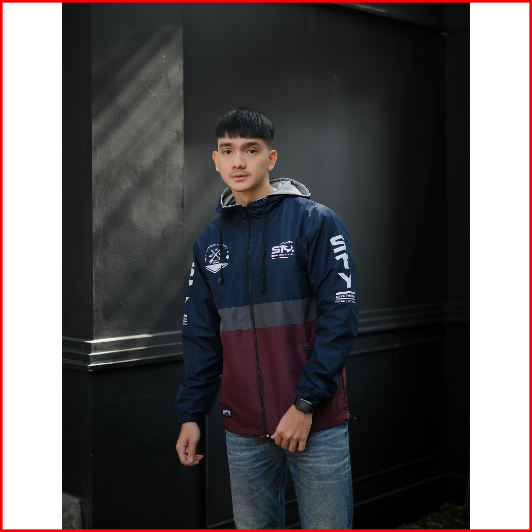 Jaket Parasut Pria Wanita Casual Anti Air Dan Anti Angin Waterproof Windbreaker Navy Save The Youth