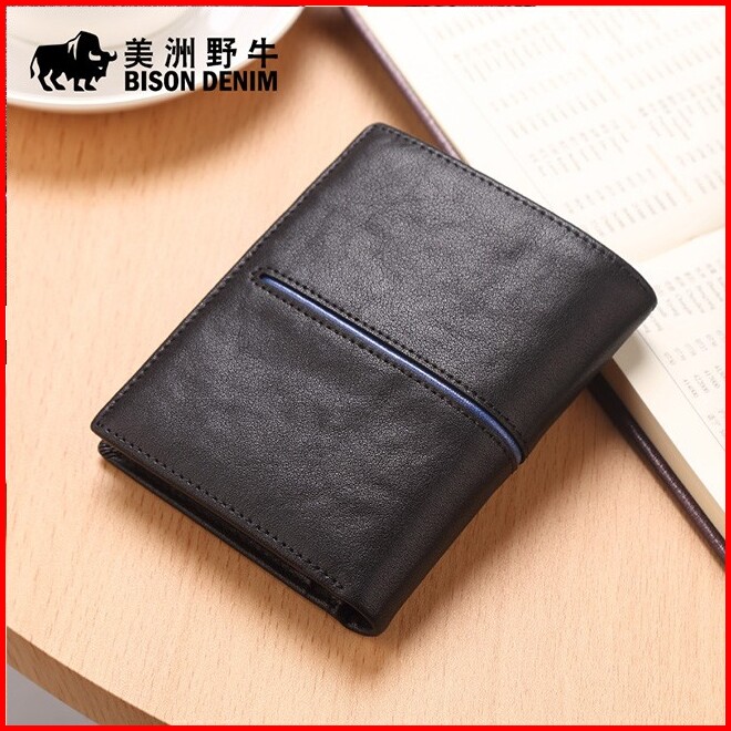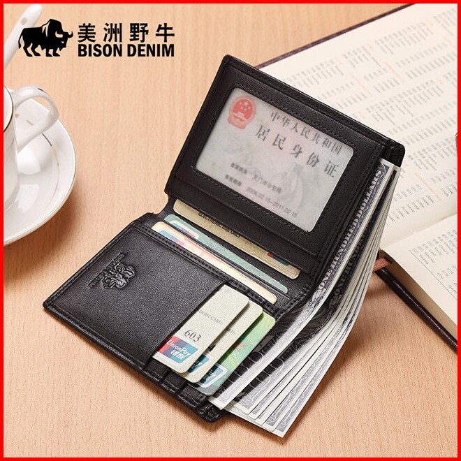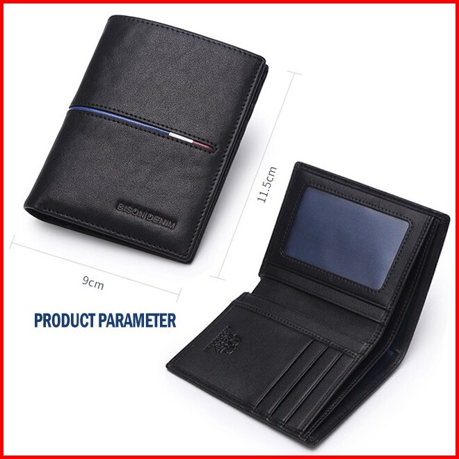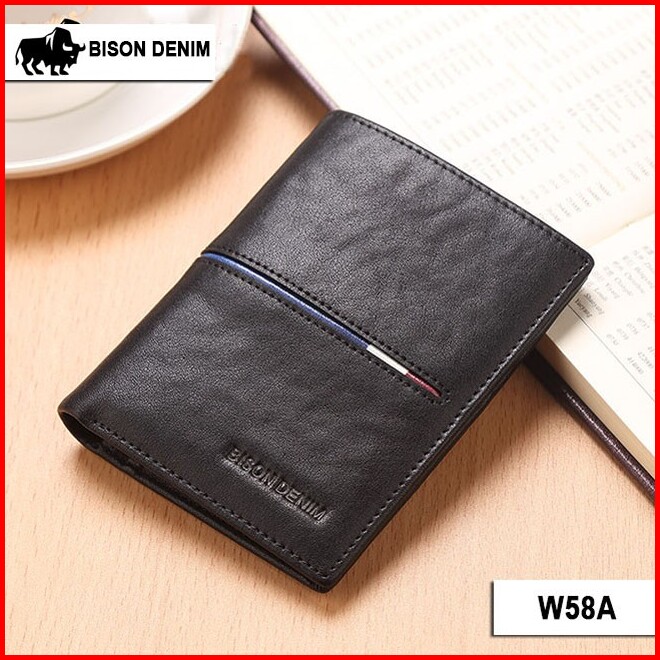 Bison Denim Dompet Pria Kulit Asli Vertical Premium Bifold Wallet W58a