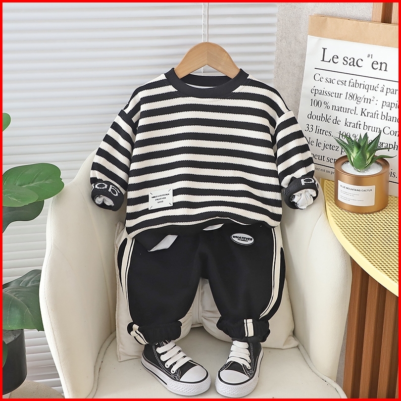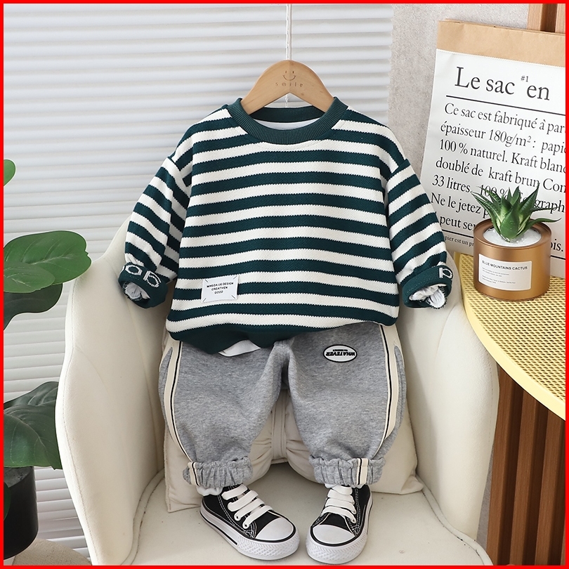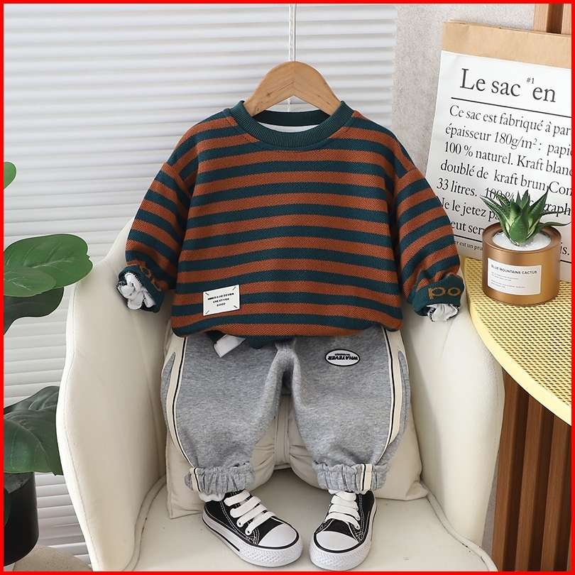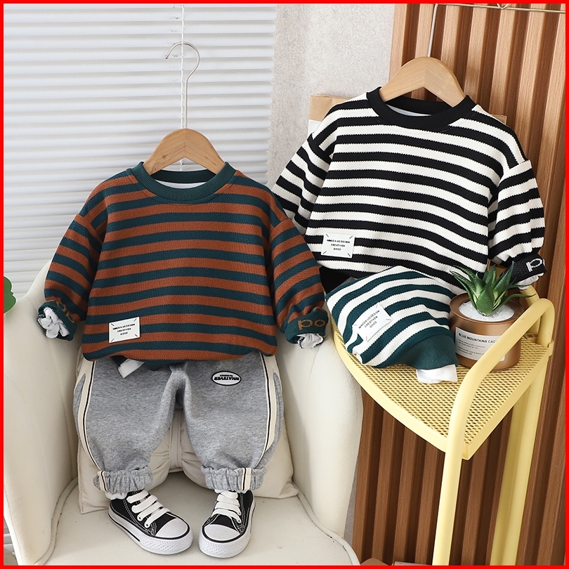 Setelan Sweater Anak Laki Laki Import Stelan Sweater Anak Balita Impor Sweater Lengan Panjang Motif Garis Garis Dengan L