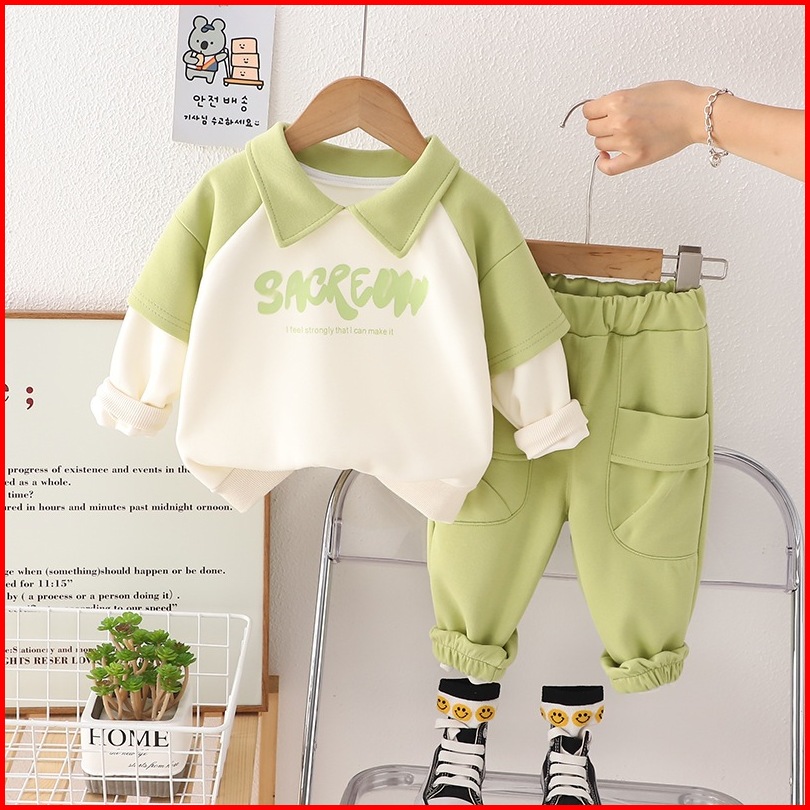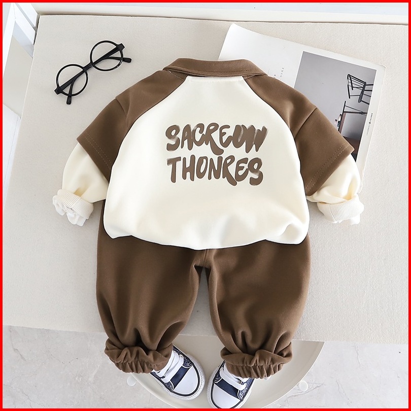 Setelan Sweater Anak Laki Laki Import Stelan Sweater Anak Balita Impor Sweater Lengan Panjang Tulisan Sacreow Anak Cowok