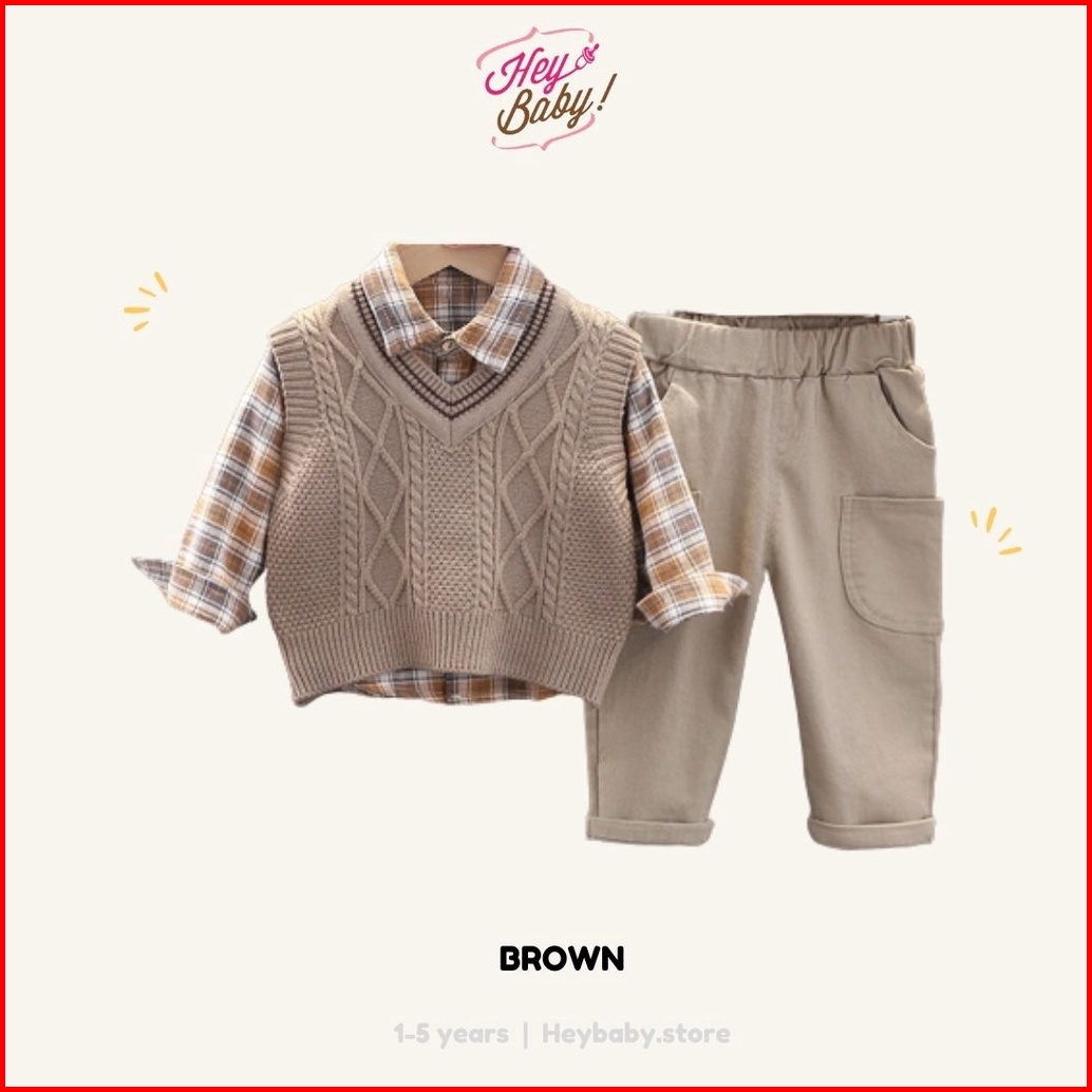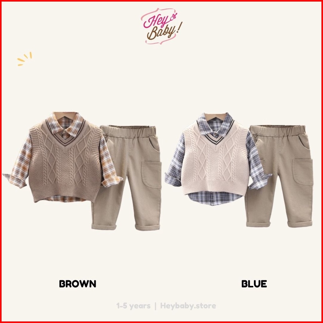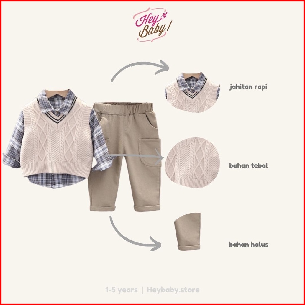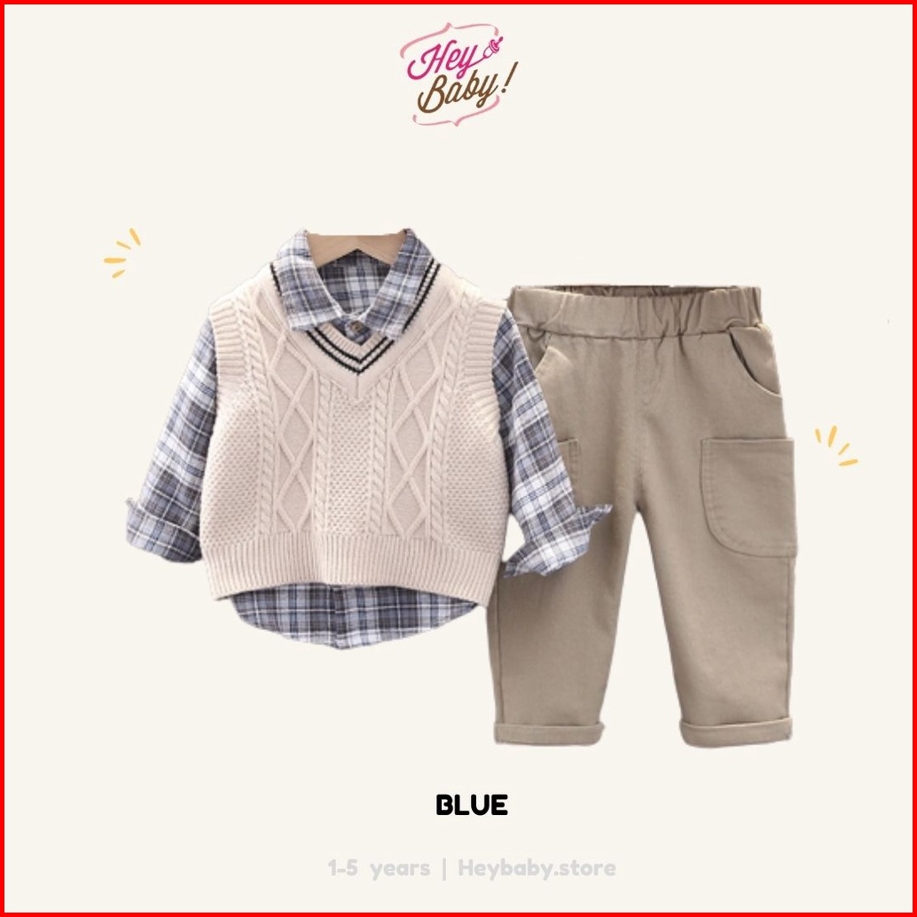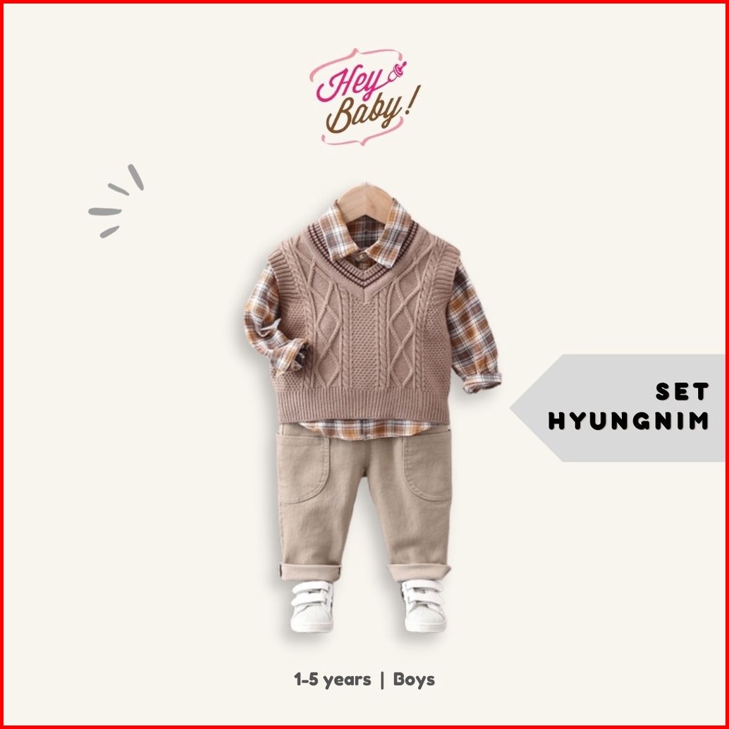 Heybaby Set Hyungnim Ebv Setelan 3in1 Kemeja Bayi Anak Laki-laki Import Lengan Panjang Berkualitas