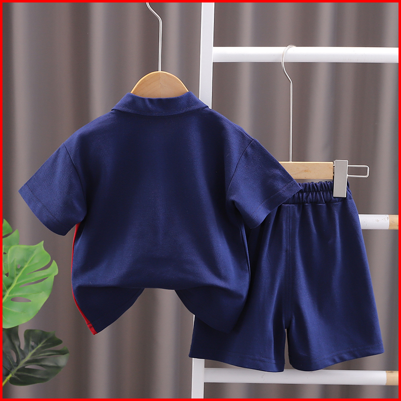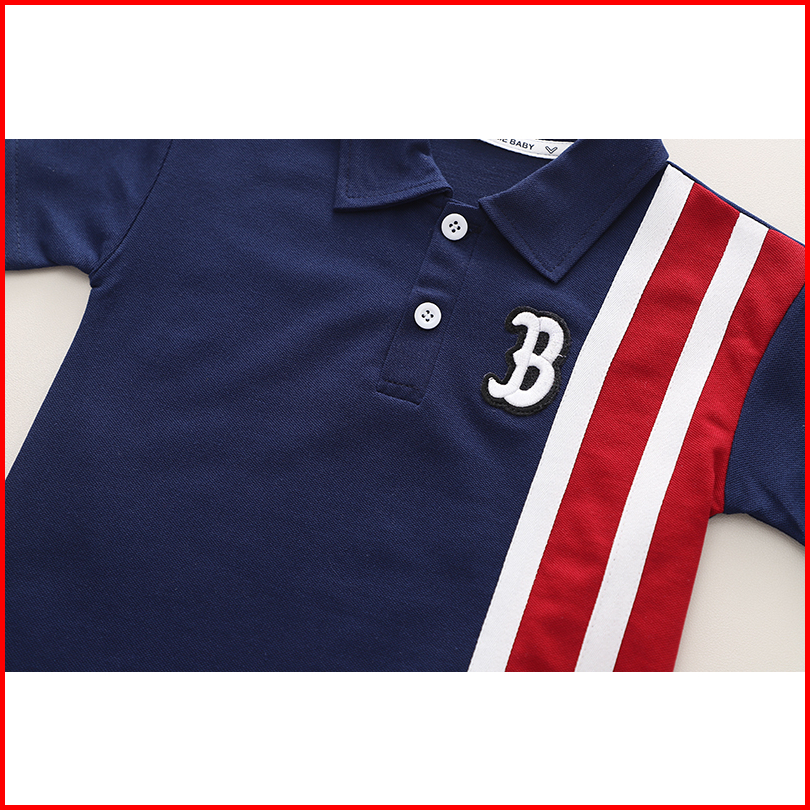 Setelan Polo Anak Laki Laki Import Stelan Kaos Polo Anak Cowok Impor Kaos Logo Huruf B Setelan 2pcs Kaos List Merah Kere