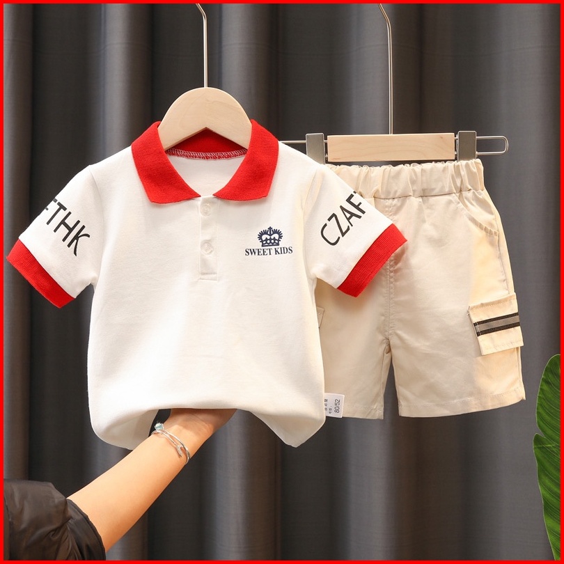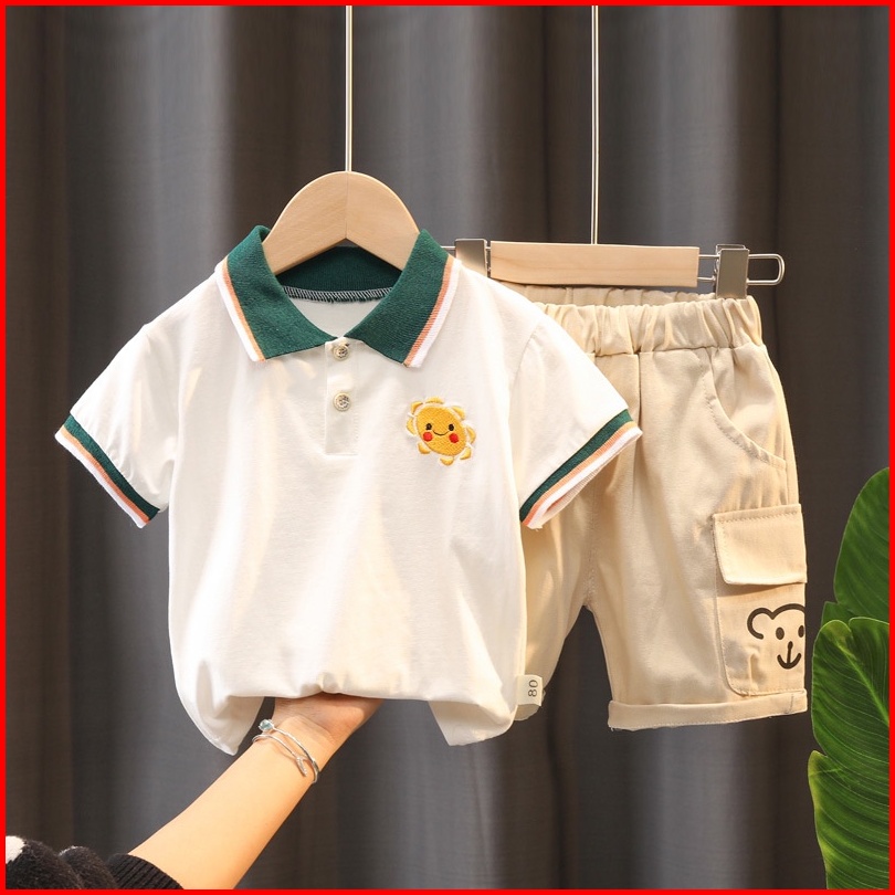 Set Baju Polo Anak Laki Laki Pakaian Katun Korea Bayi Kemeja Polo Fashion Anak Laki Laki Kecil Celana Pendek Tampan Anak