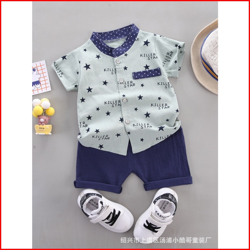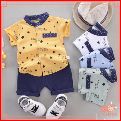Unikid 6bln-4tahun Setelan Kemeja Anak Motif Stars Import