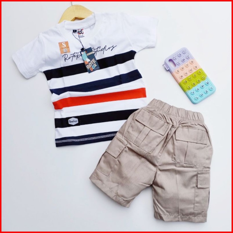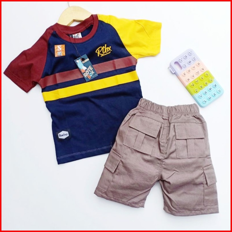 Setelan Anak Cowok Cargo Pendek Kaos Premium 1 2 3 4 5 6 Tahun
