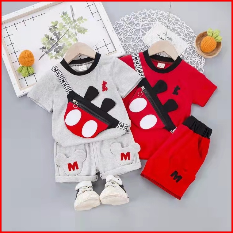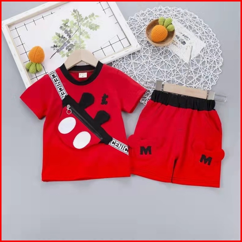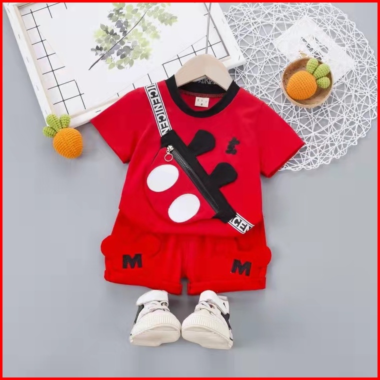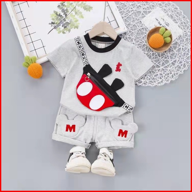 Setelan Kaos Celana Anak Import Tas Mickey Setelan Kaos Laki-laki Import Usia 1-4 Tahun Setelan Bayi-anak Laki-laki Cowo